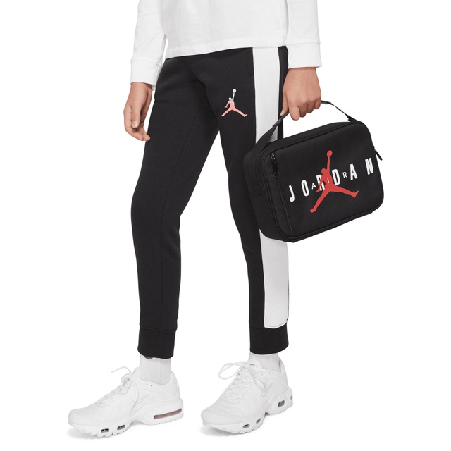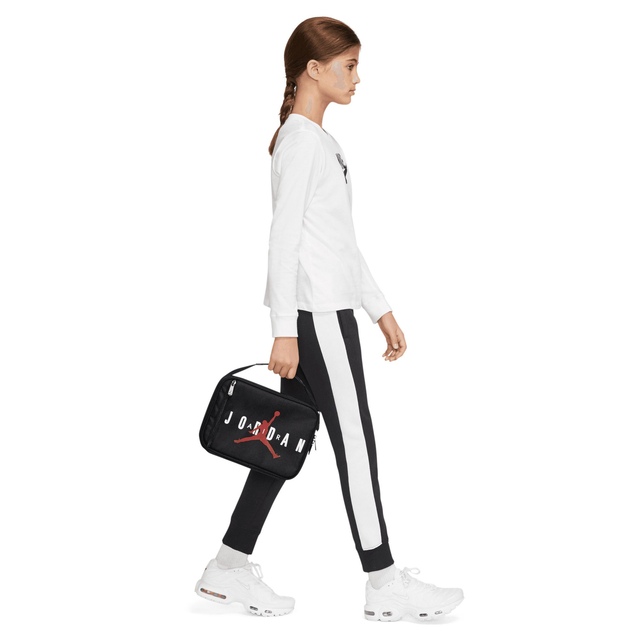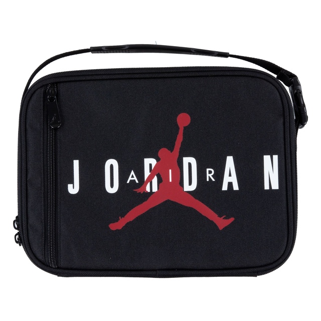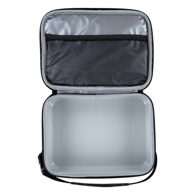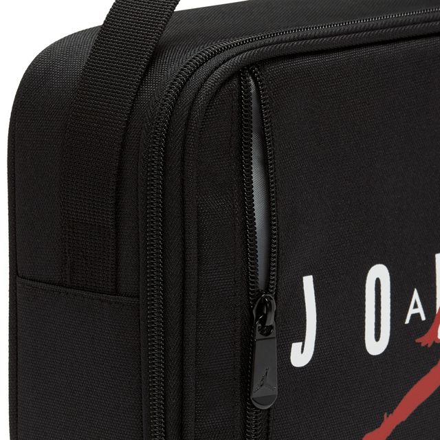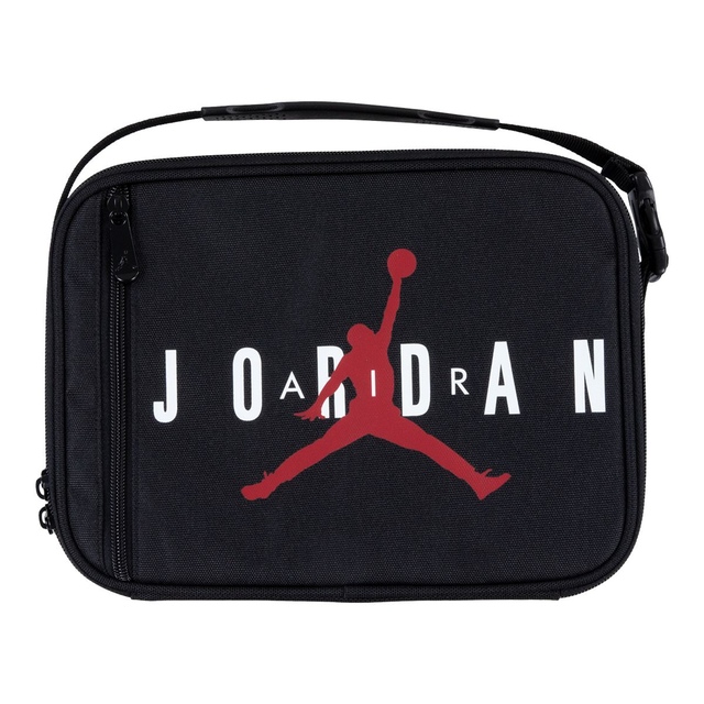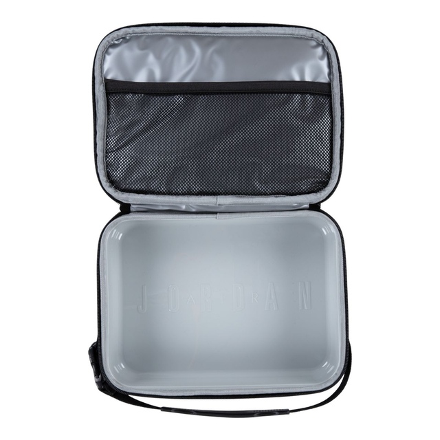 The Jordan Lunch Tote features a main zippered compartment with PEVA insulation to keep your food at the ideal temperature. It includes an interior mesh pouch pocket and a front zip pocket to help organize your snacks efficiently. The top flat handle has a buckle, allowing you to strap the entire lunch box securely to your backpack for easy transport.
