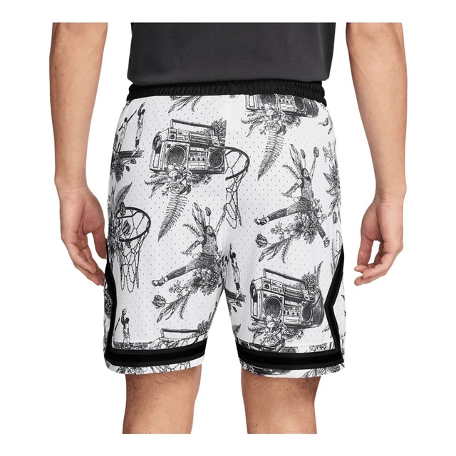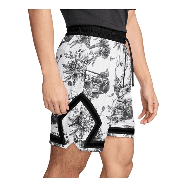 The Jordan Men's Dri-FIT Sport Diamond Shorts feature a stylish all-over print inspired by classic French toile designs, reimagined in a uniquely Jordan aesthetic. Crafted from lightweight, breathable mesh fabric enhanced with Nike's innovative Dri-FIT technology, these versatile shorts wick moisture away from your body to keep you cool and dry during athletic activities or casual everyday wear.