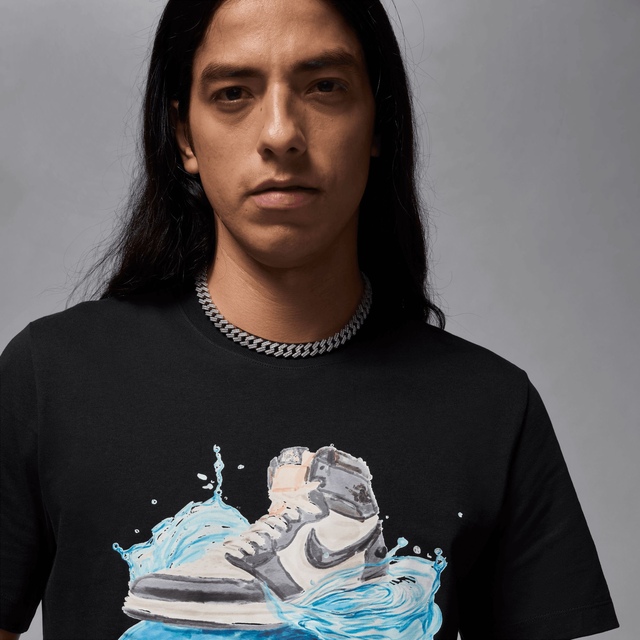 The Jordan Men's Jordan Flt Essential AJ1 Crew T Shirt celebrates the legendary Air Jordan 1 with its bold graphic design. Crafted from soft, breathable cotton, it provides a comfortable fit, perfect for everyday wear.