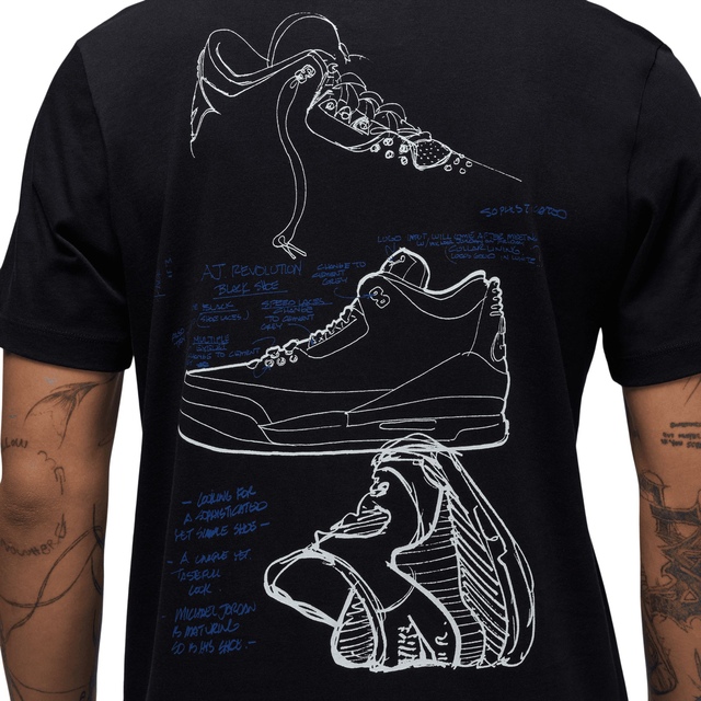 The Jordan Men's Rare AJ3 Crew T Shirt celebrates what makes each person unique through its bold graphic design. This casual tee features collaged sketches printed on the back, paying homage to the origins of Air Jordan while embracing an individualistic spirit. Part of the iconic Rare Air collection from Jordan, this t-shirt epitomizes athletic style with a contemporary twist.