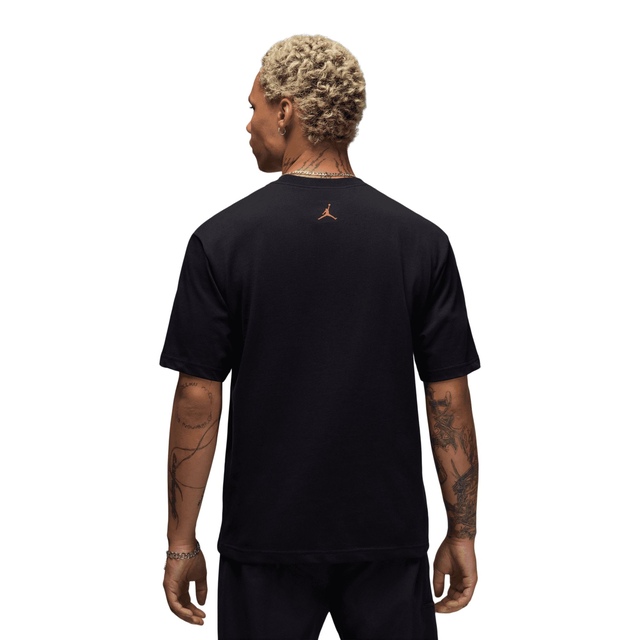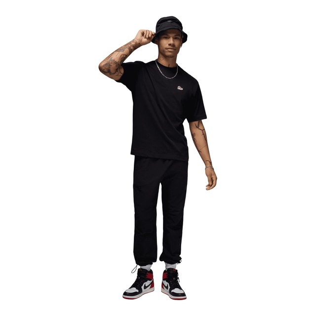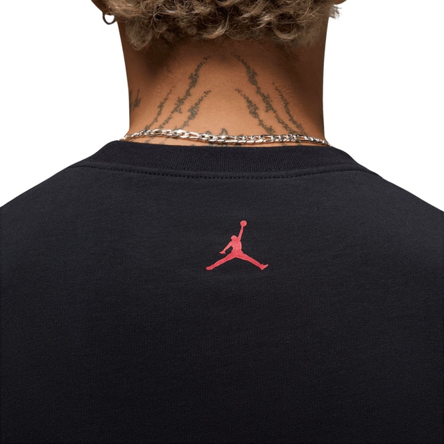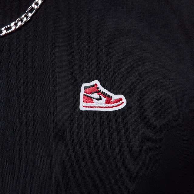 The Jordan Men's Sneaker Patch Crew T Shirt lets men showcase their love of sneakers in style. A sewn-on patch displays a stylized sneaker graphic on the chest, embellished with metallic Jordan text. Soft cotton jersey provides all-day comfort. The classic crew neckline and short sleeves offer a relaxed fit. Available in a range of colors, this tee allows fans to represent their favorite brand with sleek, sporty style. Perfect for casual wear, the t-shirt's breathable jersey knit and iconic branding make it ideal for showing off your Jordan passion.