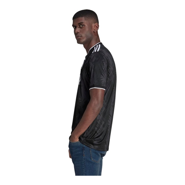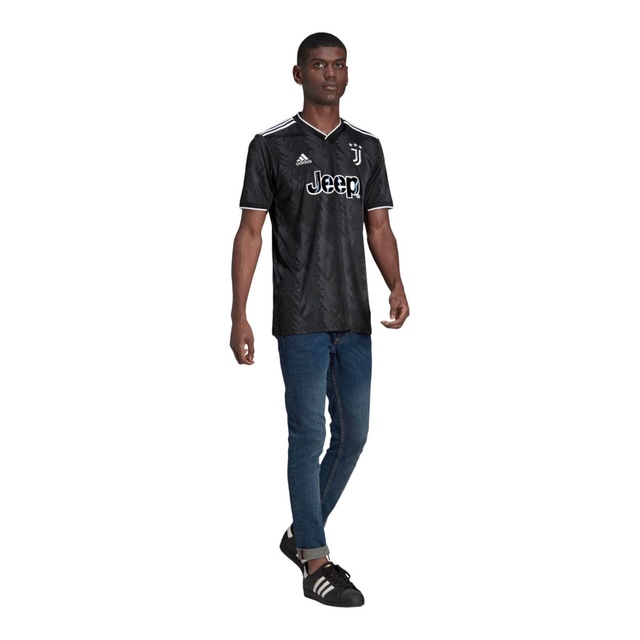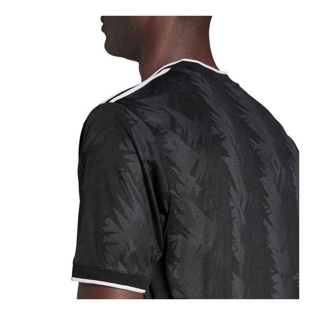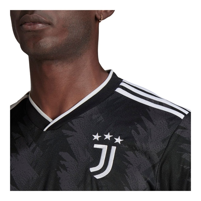 Stars and stripes hit the road. Two abiding symbols of home matches collide on this adidas Juventus away jersey. Its bold monochrome design includes black stripes formed from explosive starbursts. The mesh panels and moisture-wicking AEROREADY are all about keeping football fans comfortable. Made with 100% recycled materials, this product represents just one of adidas's solutions to help end plastic waste.