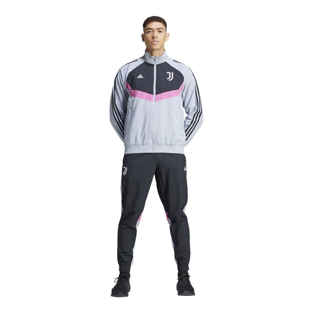 Make a football statement in this eye-catching adidas Juventus track top. When the action moves off the pitch, it'll keep you comfortable and focused thanks to soft woven fabric and zip pockets. But it's that embroidered club crest and bold chevron design that really steal the show. Zip it up and display your colours wherever your beautiful game takes you. This product is made with at least 70% recycled materials. By reusing materials that have already been created, adidas helps to reduce waste and adidas’s reliance on finite resources and reduce the footprint of the products adidas makes.