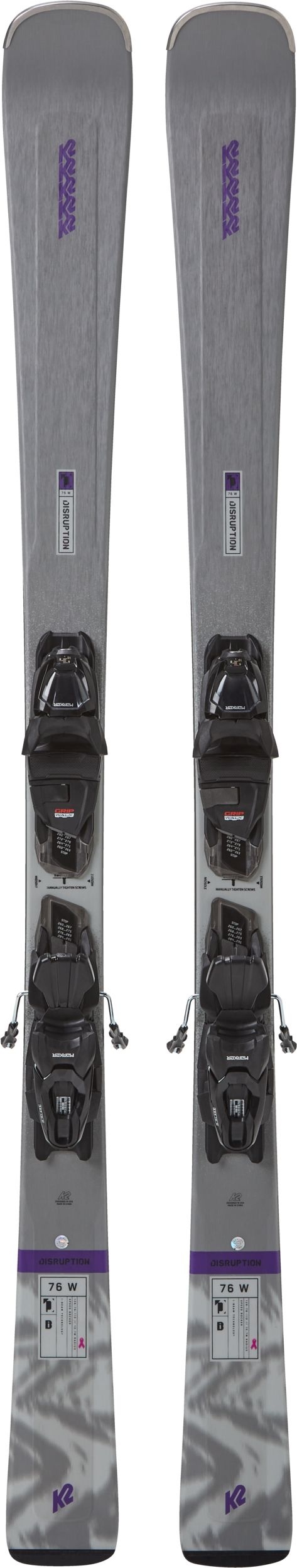 The K2 Disruption 76 Women's Skis 2024 & ERP 10 Bindings are built for women who need a piste ski that is light underfoot and quick edge to edge. Packed from tip to tail with features like the K2 I-Beam construction and Hybritech sidewalls, and loaded by the forces of power and energy, this ski will swift you into valleys of unforgettable escapades.