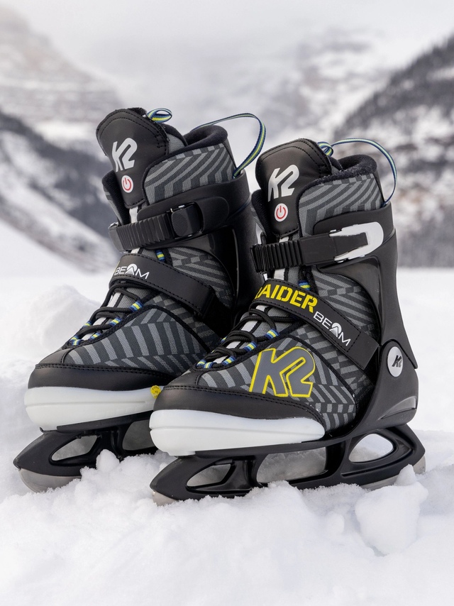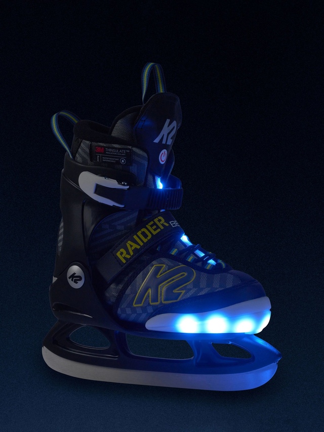 The K2 Kid's Raider Beam Adjustable Light-Up Speed-Lace Ice Skates feature vibrant red LED lights in the toe and tongue, offering a unique and exciting experience on the ice. Designed with the Original SoftBoot® and Junior Cuff, they provide a comfortable and supportive fit.