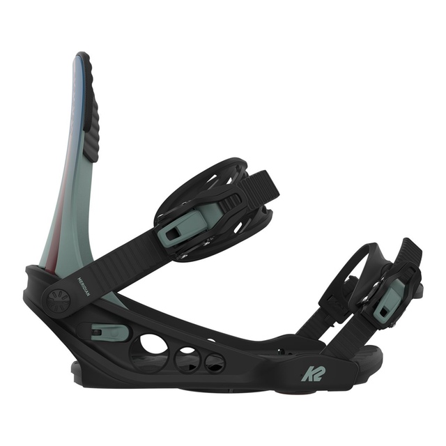 For all-day comfort, customization, and performance, the K2 Meridian sets the bar. It takes a freestyle approach to cruising, popping, and slashing your way all over the mountain - no wonder it’s a Team favorite. Exclusive to K2, the TriPod™ Chassis takes center stage on the mid-flexing K2 Meridian. This technology works in harmony with the natural geometry of the human foot to find the sweet spot between energy transfer and board flex. We’ve also built in 3º of canting, and an adjustable power ramp places you in a balanced riding position while perfectly matching the shape of your boot outsole. The urethane-based Tweakback™ high back is flexible and features our Gap Eraser™ forward lean adjustment, eliminating the need for a traditional lean-block - resulting in a lighter weight binding with a superior response. Holding your boot securely into the binding, our 3D Bender™ ankle strap and Perfect Fit™ 2.0 toe strap are supremely comfortable and allow maximum flexibility and support for grabs and tweaks. In addition, the ankle and toe straps utilize aluminum ratchets with EZ Feed design for lifelong durability and quick strapping in.