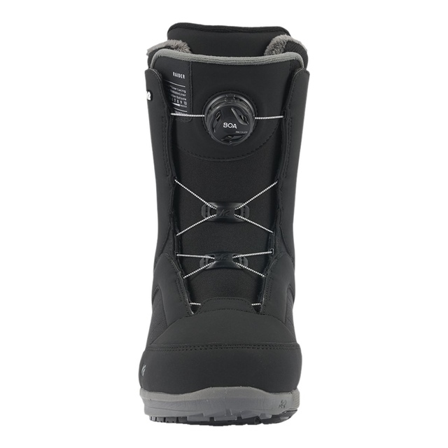 With upgraded fit and functionality comes progression, and that’s precisely what we had in mind when we designed the K2 Raider snowboard boot. A long-time favorite of resort employees and progressing snowboarders alike, we packed all the essentials into the mix in the Raider, starting with an H4 Coiler BOA® Fit System. This securely closes the shell using a stainless-steel BOA® lace for the perfect fit and helps to effortlessly get you in and out of your boots at the beginning and end of the day. Next, we added Fast-In liner lacing to maximize fit and keep the liner snug against the contours of your feet. No matter the shape of your foot, the ultra-warm, heat-moldable, and breathable Intuition® Comfort Foam 3D liner hugs every nook and cranny for a great fit right out of the box. We added internal and external J-bars to the liner to increase responsiveness when turning, wrapping your ankles with support and cushion, and added an EVA footbed for comfort. We built the whole thing on a grippy, lightweight rubber outsole for hiking and exploring new terrain and filled the midsole with our proprietary Harshmellow™ foam, helping to increase impact absorption and help dampen vibration underfoot.