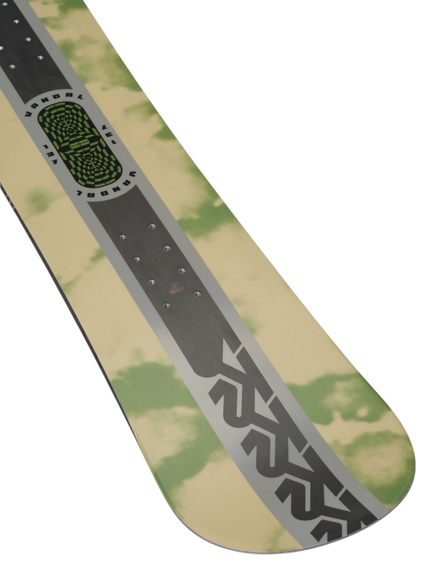 Twin Rocker Profile that's flat between the feet, with rocker outside the bindings to make turning and spinning easier than ever
