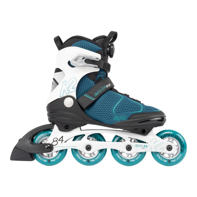Level-up your fitness game in the K2 Women's Alexis 84 Inline Skates. Designed with the BOA® Fit System, this K2 Softboot® can be fine-tuned while skating to create the perfect fit. The stamped aluminum frame provides a stable platform for speed, while the maneuverable wheelbase and stability plus cuff deliver maximum support. Combined with 84mm wheels with ILQ-7 bearings, these inline skates deliver efficient rolling down the road.