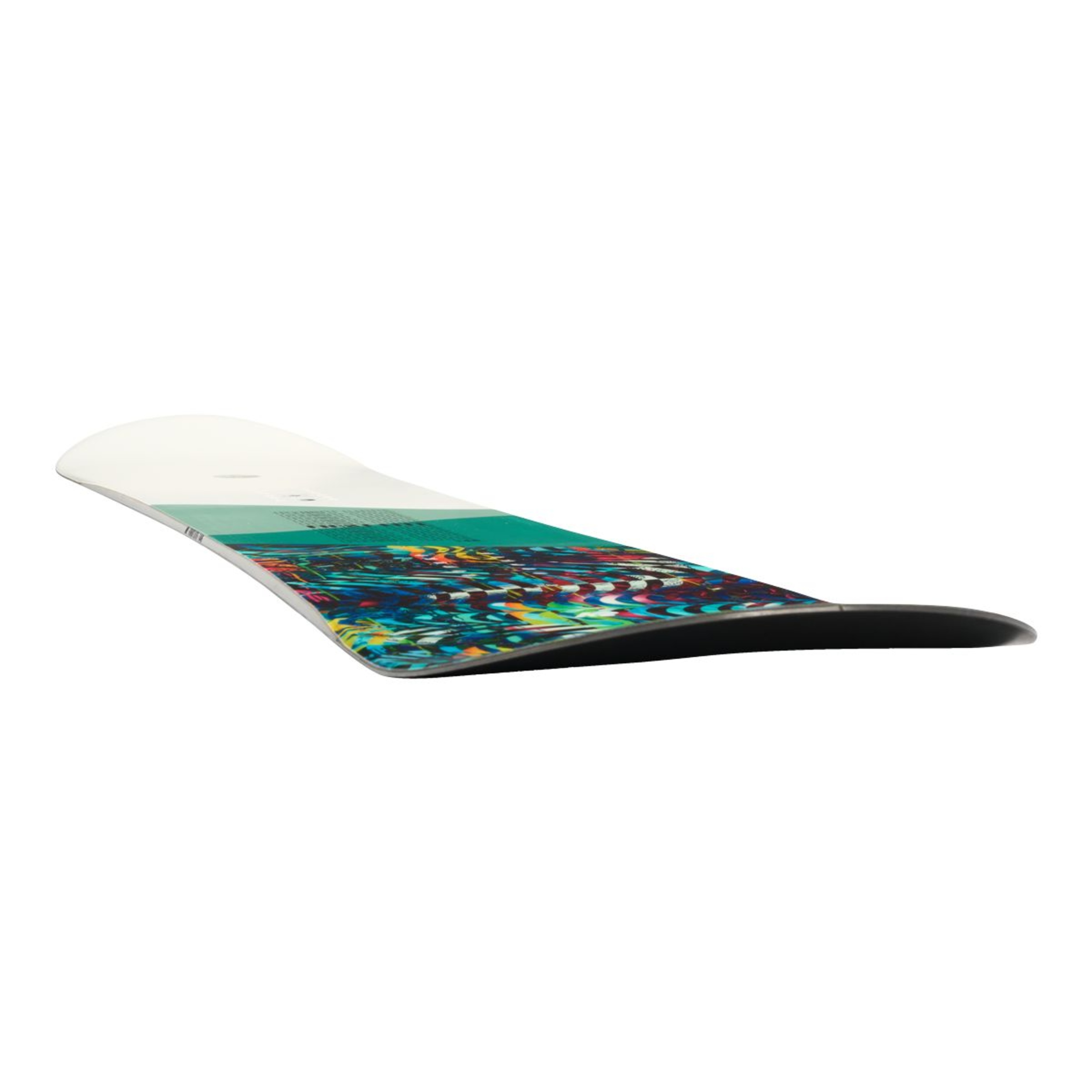 The twin rocker profile features a flat section between the bindings with rocker just outside, allowing for easy turn initiation and release to help beginners link turns more smoothly.