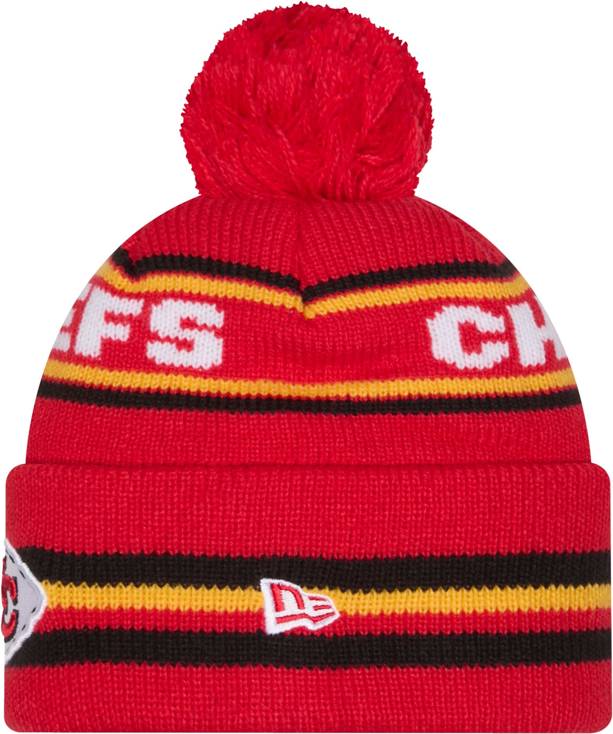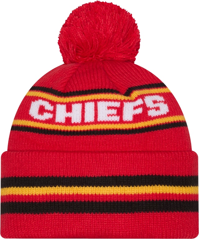 Show your support for the Kansas City Chiefs with this stylish Kansas City Chiefs New Era Knit Hat. Featuring secondary team colour throughout, a woven wordmark, and an embroidered logo, this knit hat is perfect for any fan. The one-time removable pom allows you to customize your look, making it a versatile addition to your winter wardrobe.