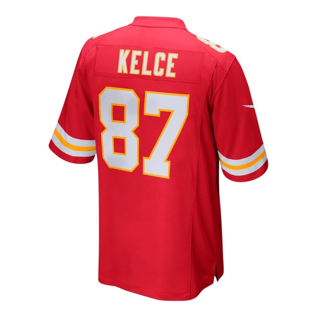The Kansas City Chiefs Nike Travis Kelce Game Jersey delivers official licensed NFL style with sweat-wicking performance. Nike's Dri-FIT technology keeps you dry and comfortable, while breathable mesh side panels allow maximum ventilation. This authentic jersey features a stitched NFL shield, representing the league's high quality standards.