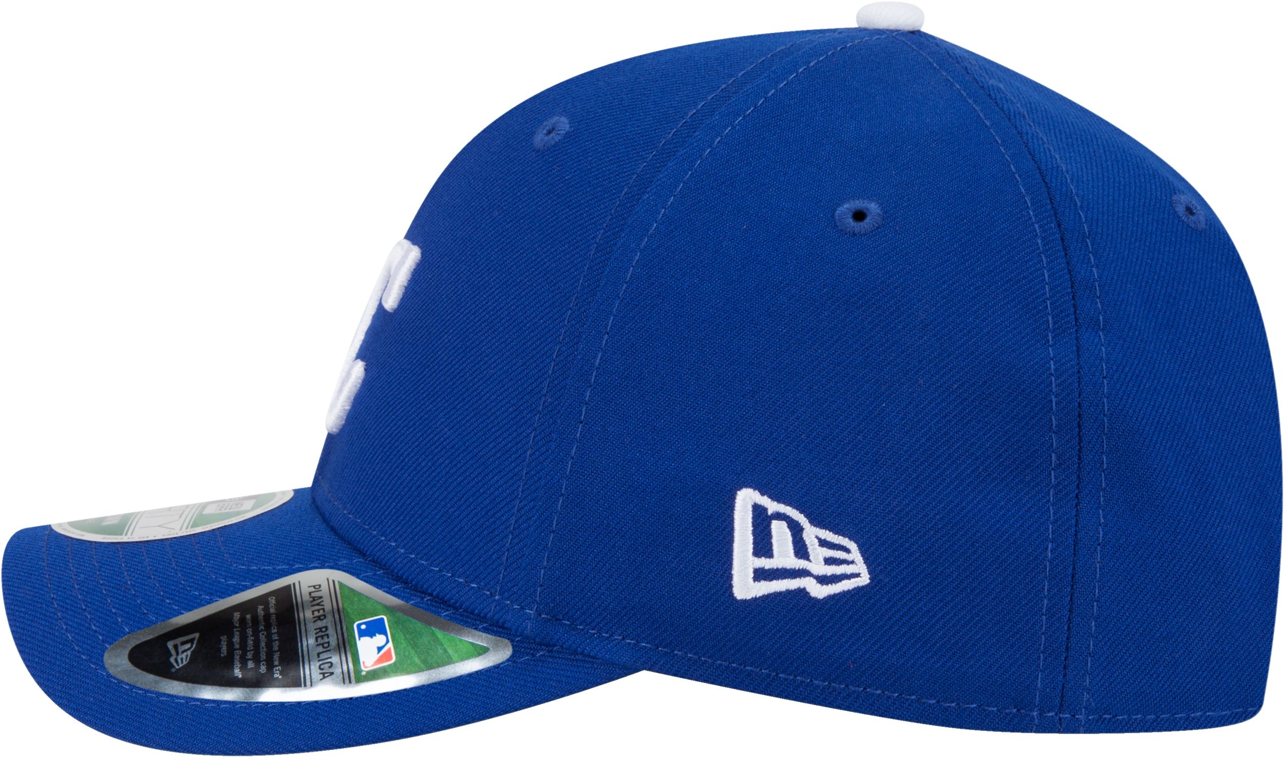 The Kansas City Royals New Era Player Replica 9FORTY Cap is an updated silhouette with a semi-full shape that more closely replicates the on-field cap. This modern visor is slightly shorter and less curved for minimalistic style. Embroidered Royals logo on the front panels with a matching MLB Batterman logo above a snapback closure at the rear, finished with a black undervisor for a true replica look.
