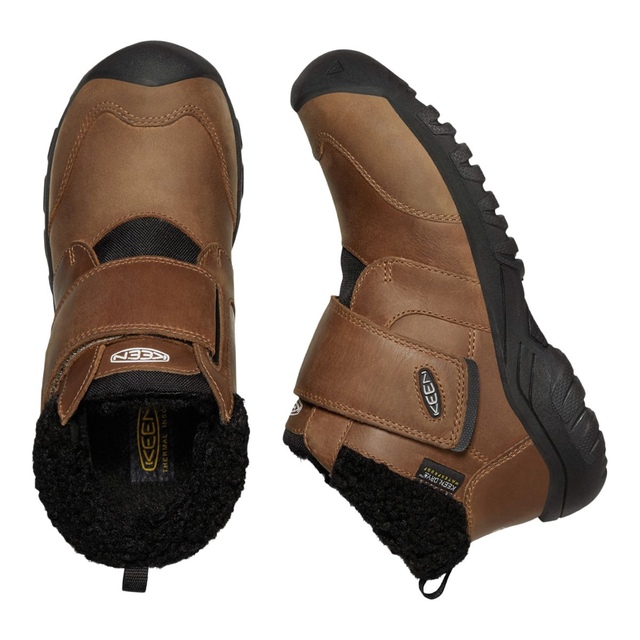 The KEEN Kids' Kootenay IV Non Slip Winter Boots are designed to keep kids' feet dry and warm while allowing airflow to prevent moisture. They come with an adjustable strap and insulated soft lining, ensuring a snug fit. These waterproof boots also feature a durable rubber sole that provides a firm grip during rainy and winter adventures.