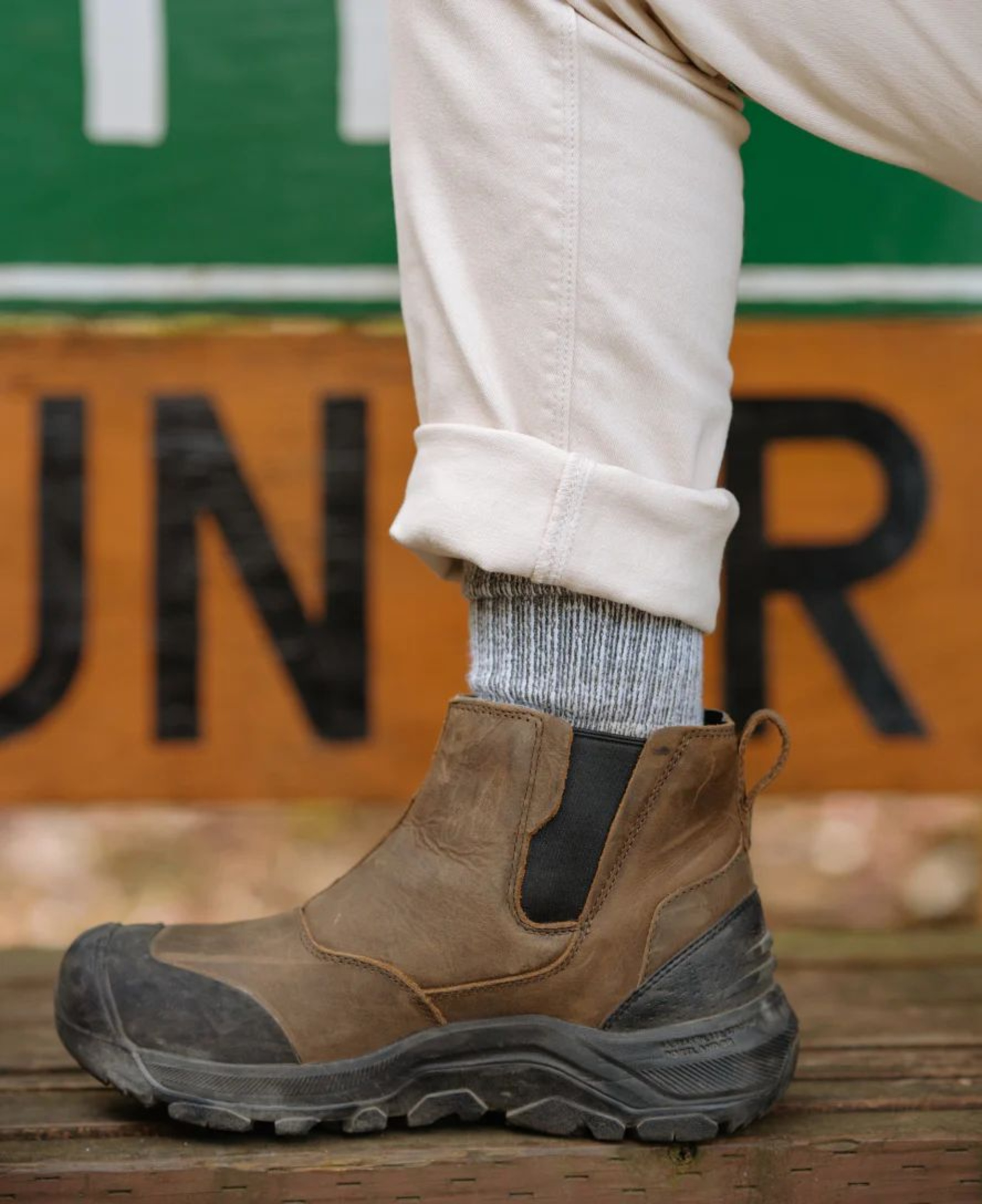 Durable Chelsea boot design allows for easy slip-on and off, combining convenience with robust winter protection