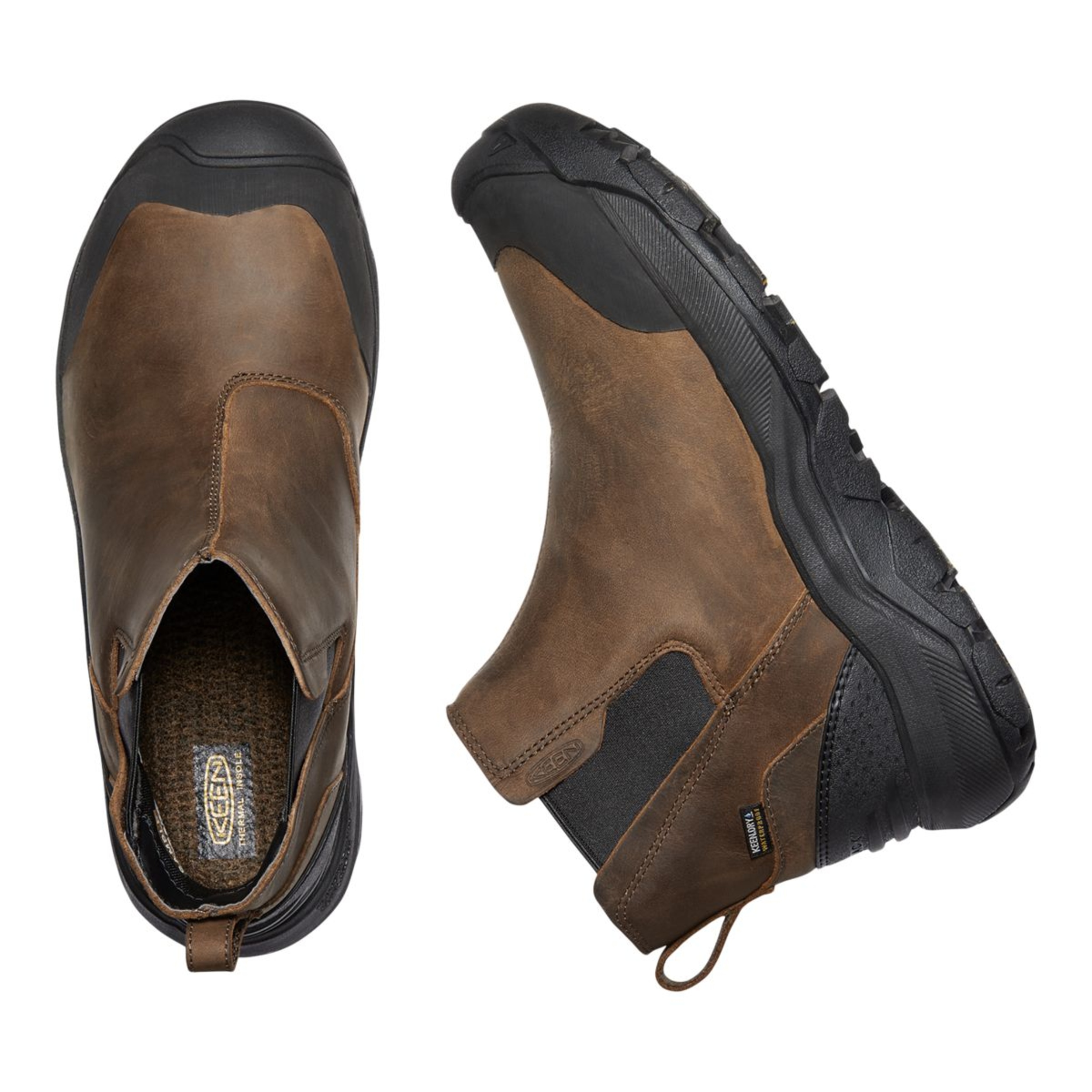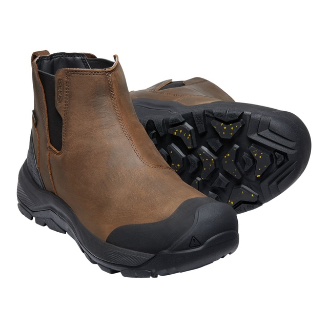 The KEEN Men's Revel IV Chelsea Insulated Waterproof Winter Boots combine advanced insulation technology with superior traction to keep feet warm, dry, and stable in temperatures as low as -25°F/-32°C. Featuring a Polar Traction outsole with multi-directional lugs, they provide a confident grip on icy and snowy surfaces. The waterproof, breathable design and innovative insulation system, including 200g of recycled PET and Heat Trapolator technology, ensure optimal comfort in wet and freezing conditions. With their easy slip-on Chelsea boot style, these winter boots offer both functionality and convenience for winter adventures.