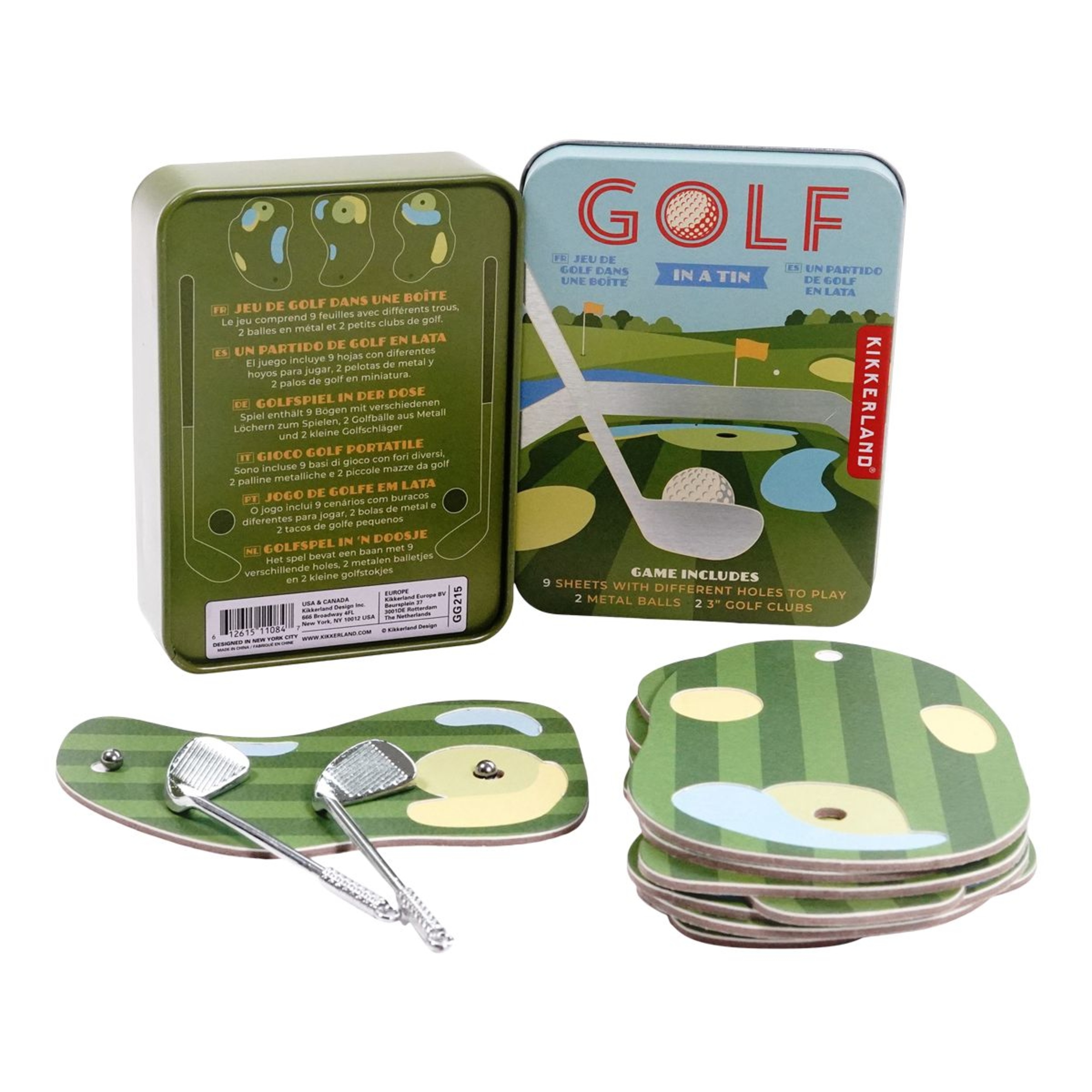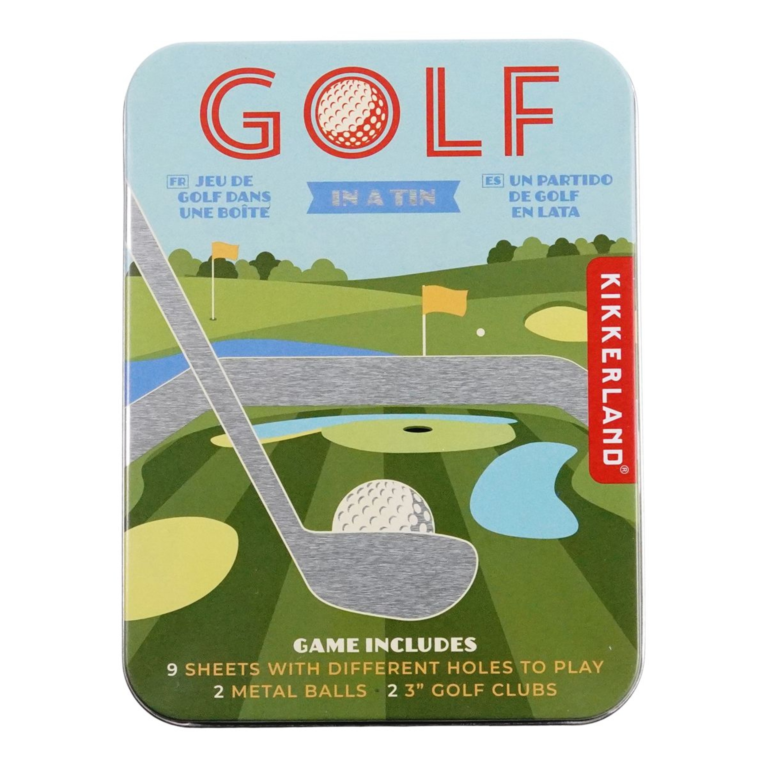 Kikkerland's Golf in a Tin Game is perfect for on-the-go fun. With nine different holes, two miniature clubs and two golf balls in each set, it's easy to take the fun along anywhere. The handy travel tin keeps all pieces together and this set makes a great gift for the avid golfer.
