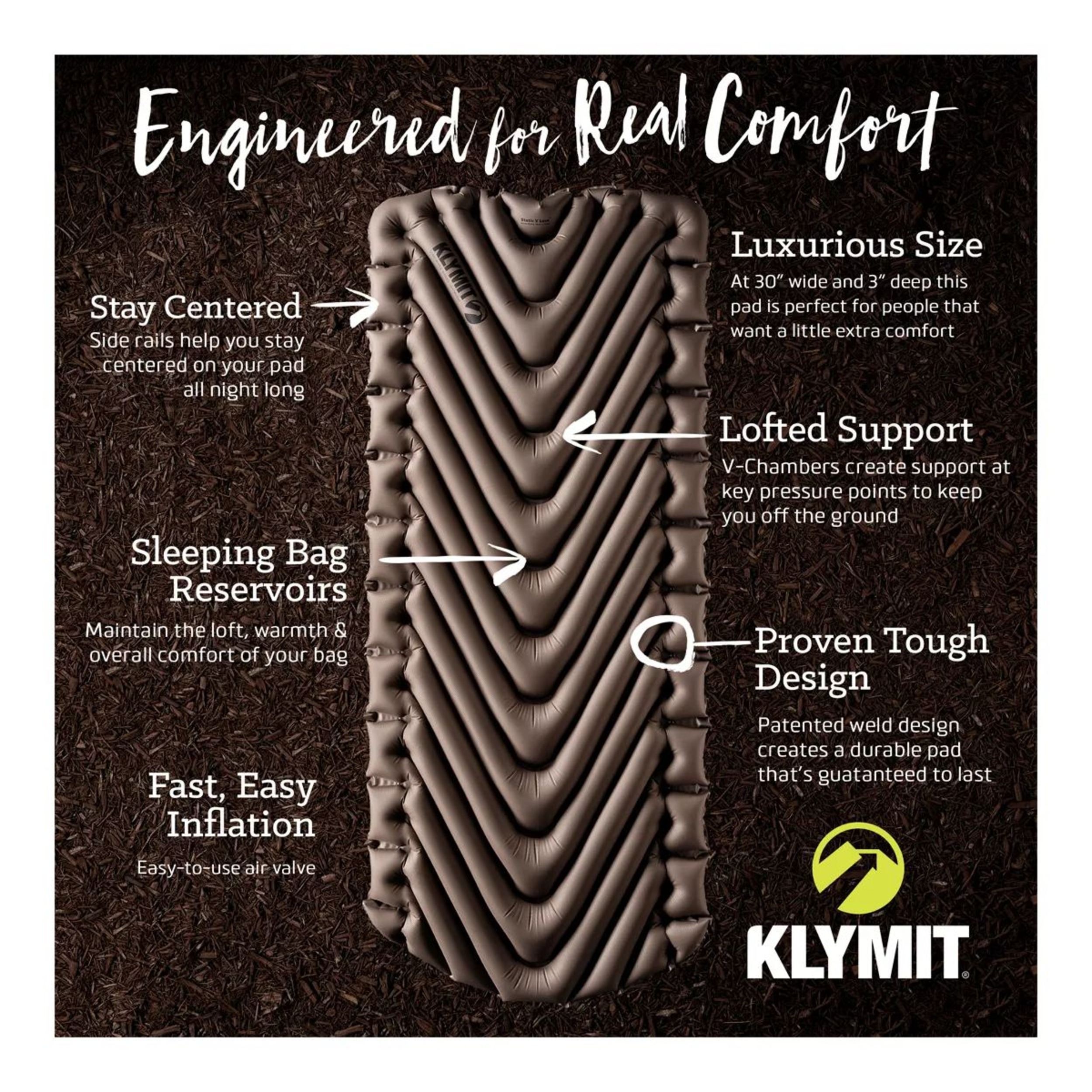 Ensure a good night's sleep in the Klymit Static V Luxe XL Sleeping Pad. This extra-wide Klymit sleeping pad enhances your sleeping bag's loft and warmth, featuring durable 75D polyester and innovative raised V-Chambers for optimal support and durability.