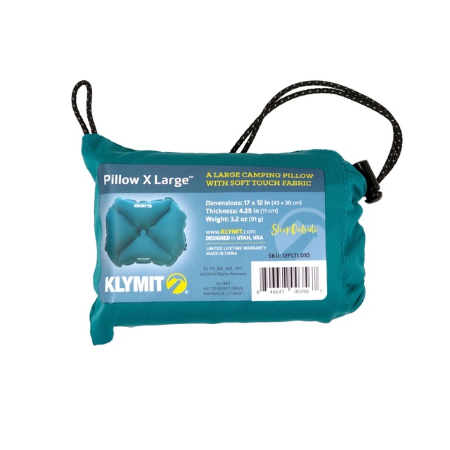 Get a head start on nighttime camping comfort with the Klymit X Large Pillow. The innovative X design ensures your head remains centred during rest. This larger, thicker version uses softer materials for enhanced cushioning. The portable Klymit pillow easily adjusts in height and firmness, packs to wallet size and fits perfectly inside a mummy-style sleeping bag.