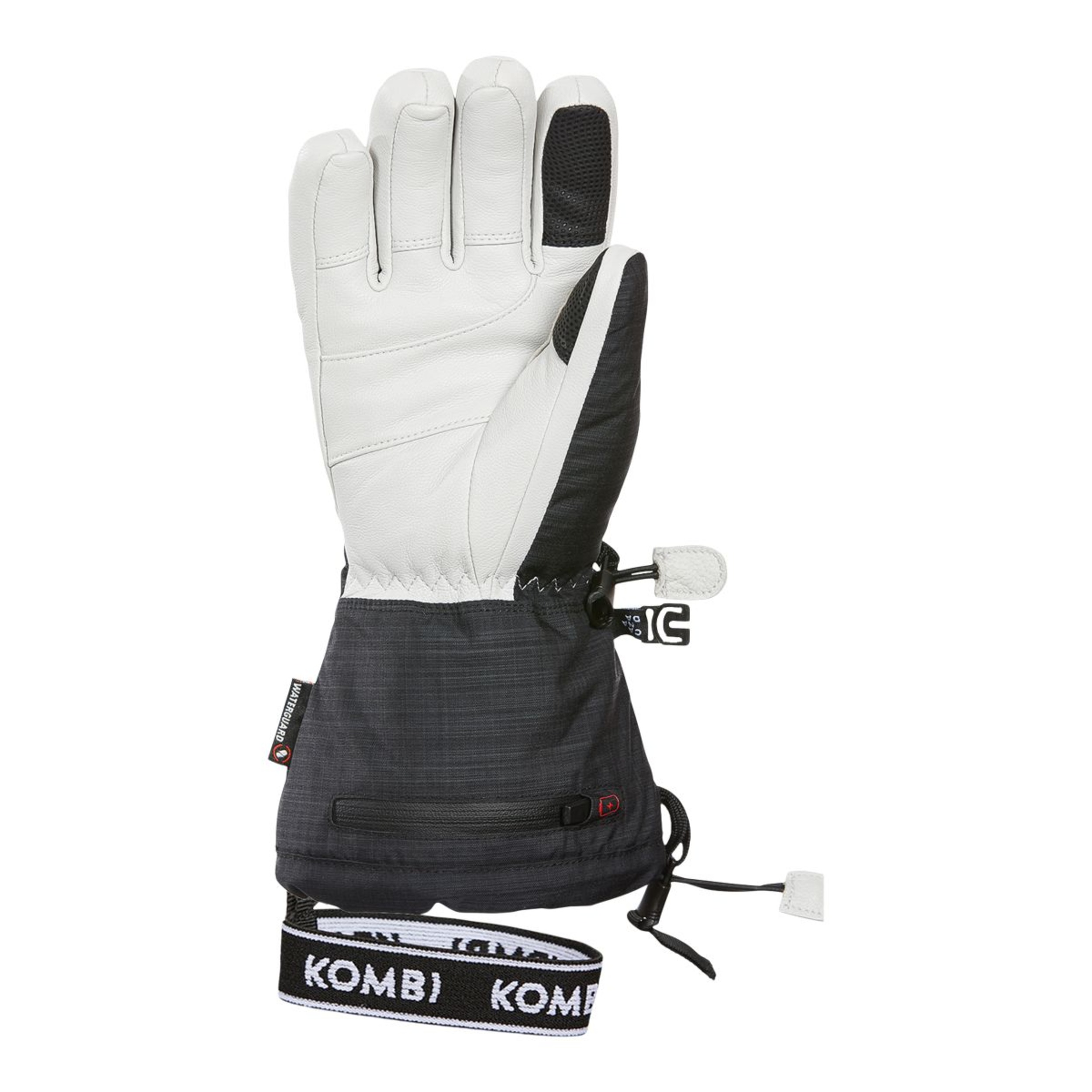 Heated gloves offer extra warmth with one push of a button. The heat surrounds the back of the hands, fingers and thumbs, according to the level of warmth desired. Wool-blend lining completes the warmth package.