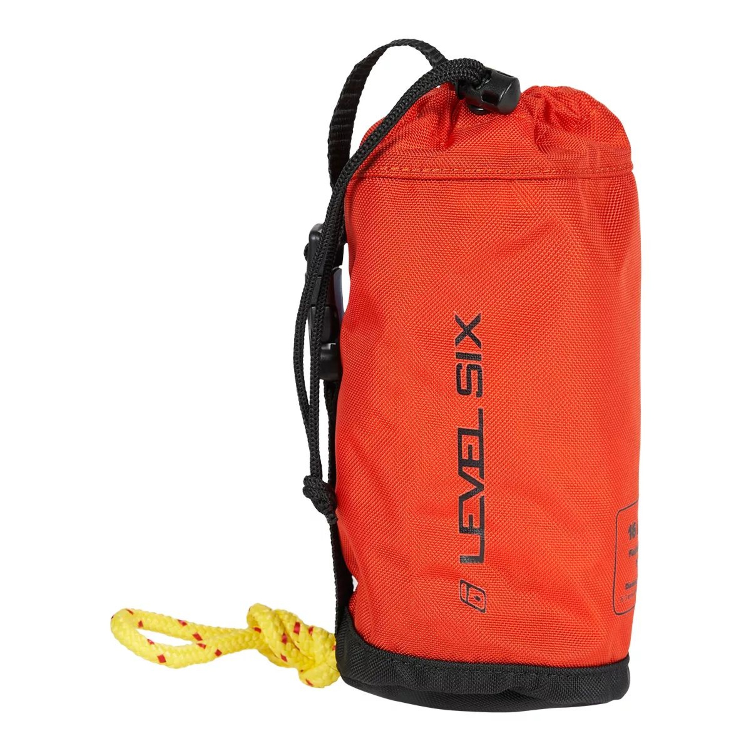 The Level Six Compact Safety Throw Rope Bag is designed for quick river rescues, providing reliable safety when every second counts. It features a 16-metre, 1/4-inch dynamic rope with a 24% stretch threshold and 200-kilogram breaking strength, offering flexibility and strength for challenging rescues. Its drawcord closure and webbing loop allow for easy carrying and rapid deployment, making this throw rope bag an essential tool for any water adventurer.