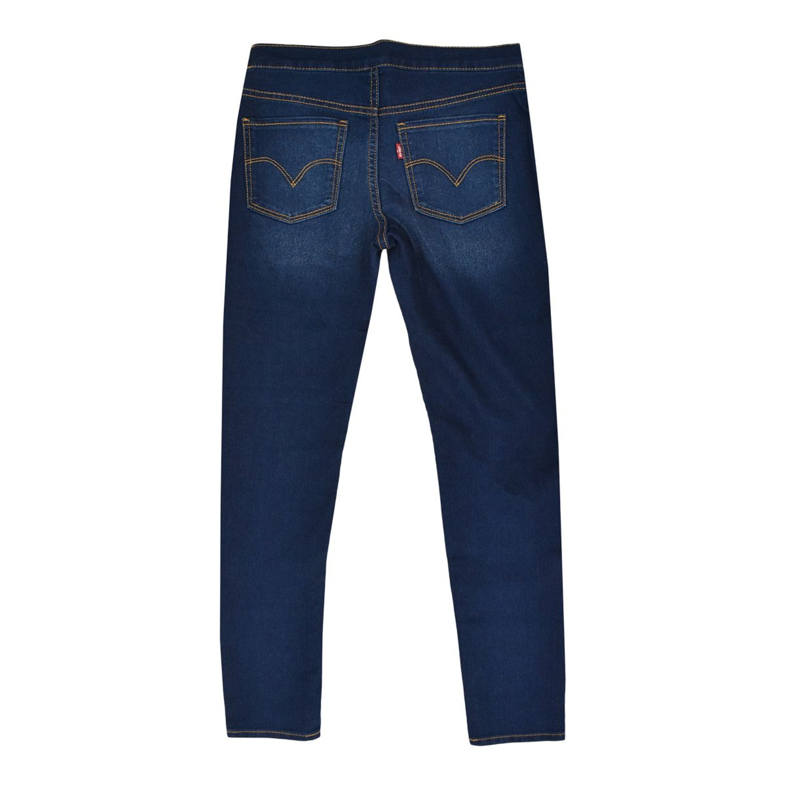 The look of jeans with the comfort of leggings. Mid-rise. Super skinny from hip to ankle with an elastic waistband, 2 front pockets, 2 back pockets and a Levis woven label on the back pocket.