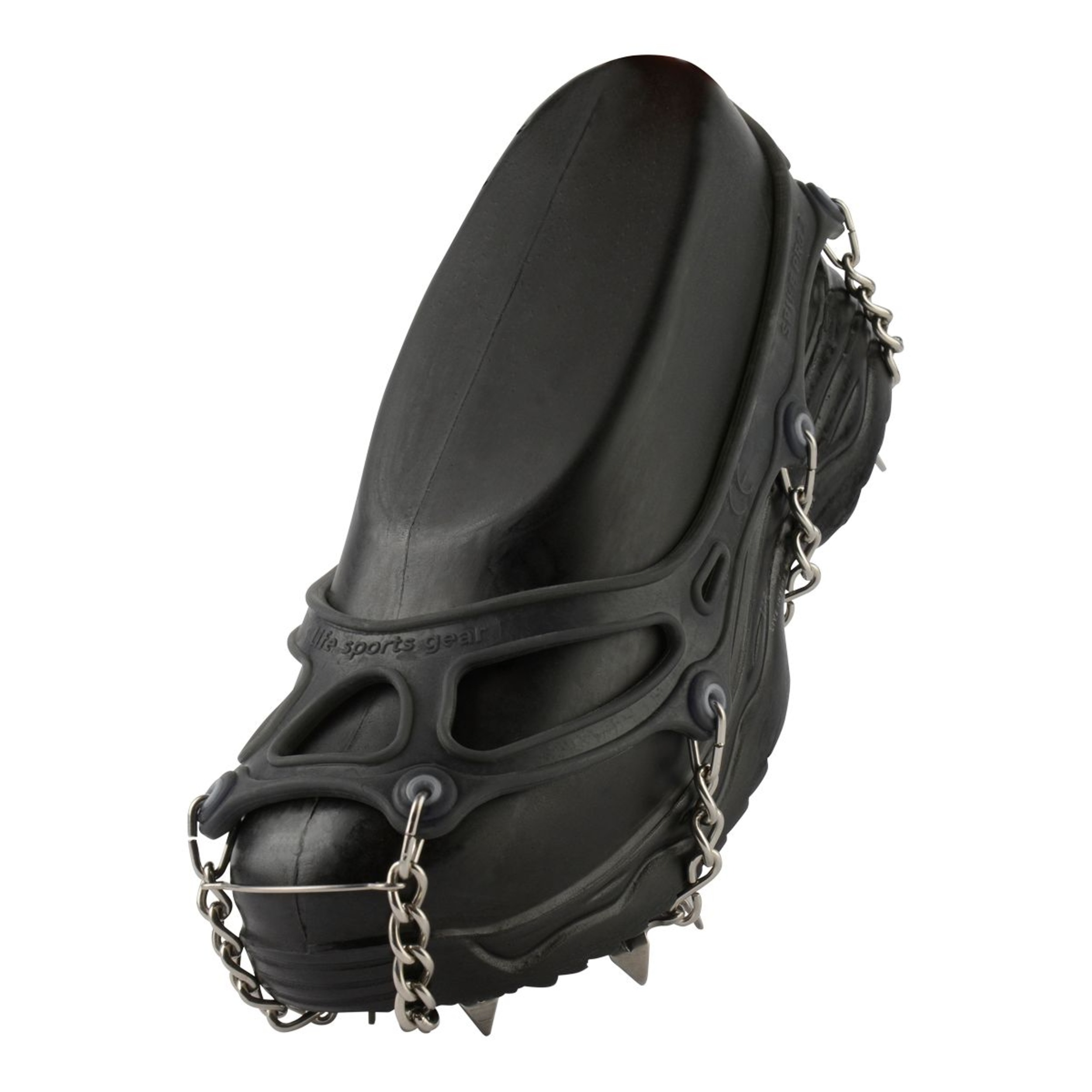 The Life Sports Spike Pro2 Ice Cleats are designed for superior performance. Featuring 11 durable 420J2 stainless steel spikes and robust 304 stainless steel chains, these cleats ensure heavy traction on icy terrains. They have a flexible TPR band that fits securely, and these Life Sports ice cleats come with a convenient carrying pouch for easy transport.
