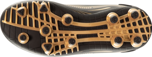 Combination of circular and triangular cleated TPU plate provides superior traction on firm ground pitches