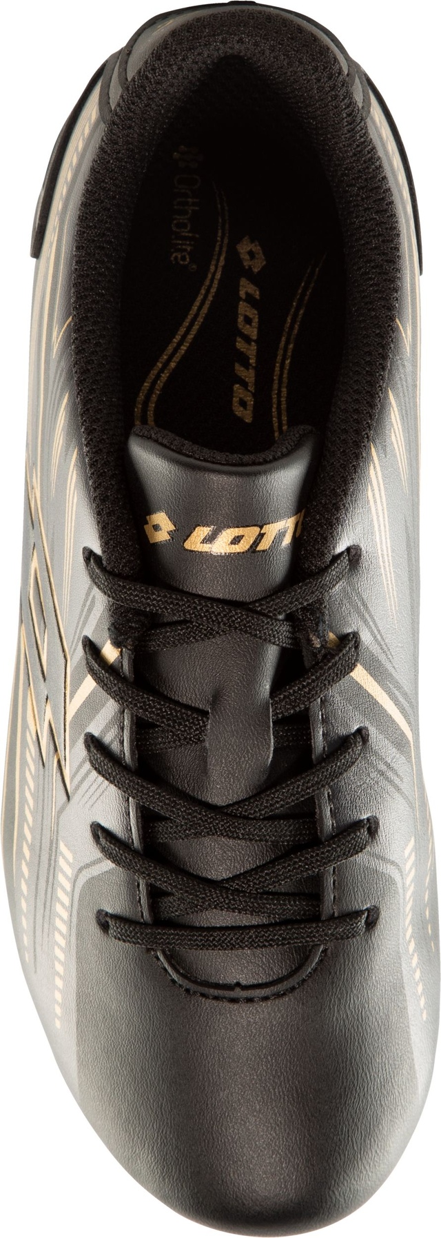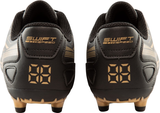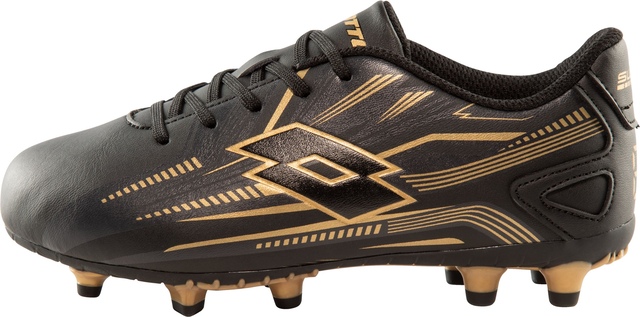 The Lotto Kids' Swift Speed Firm Ground Cleats are ideal junior soccer shoes for comfort and traction. With a synthetic PU upper, padded heel, anti-slip rubber outsole and removable Ortholite foam insole, these cleats provide young players stability and confidence on firm ground. Printed graphics, including a player number on the heel, give these shoes stylish flair. The cleated TPU plate combines circular and triangular studs for superior grip when making quick cuts and turns on natural grass pitches.