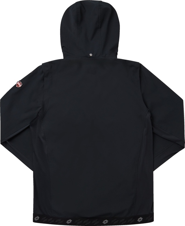 The Lotto Men's Hybrid Soccer Training Jacket is made with DWR woven stretch fabric to give you a water repellant training layer. With mesh side under arm panels and back mesh shoulder vents this jacket allows your body to breath while training. This jacket also features Lycra bound cuffs and an inner zipper finish along zipper tapes. The Lotto Men's Hybrid Soccer Training Jacket is the go to choice for keeping dry and cool during an intense practice session.