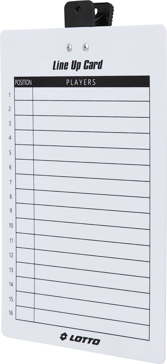 The Lotto Soccer Coaches Clipboard is the perfect companion for coaches. This portable and easy-to-use clipboard includes a durable clip and dry erase marker with a felt eraser. With its easy wipe-off surface and on-field marking and substitution plan, you can quickly make changes during games and practices.