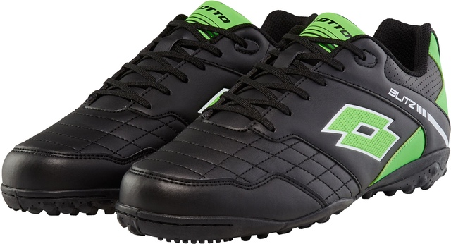 The Lotto Unisex Blitz Turf Adult Turf Soccer Shoes feature PU uppers and OrthoLite insoles for softness and shock absorption during play on turf fields. Vamp stitching enhances ball control while the rubber outsoles provide excellent traction. The lightweight synthetic leather upper material offers durability, as the OrthoLite insole provides underfoot comfort. With superior traction and control, the Lotto Blitz Turf shoes are ideal for adult soccer players who compete on artificial turf.