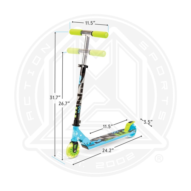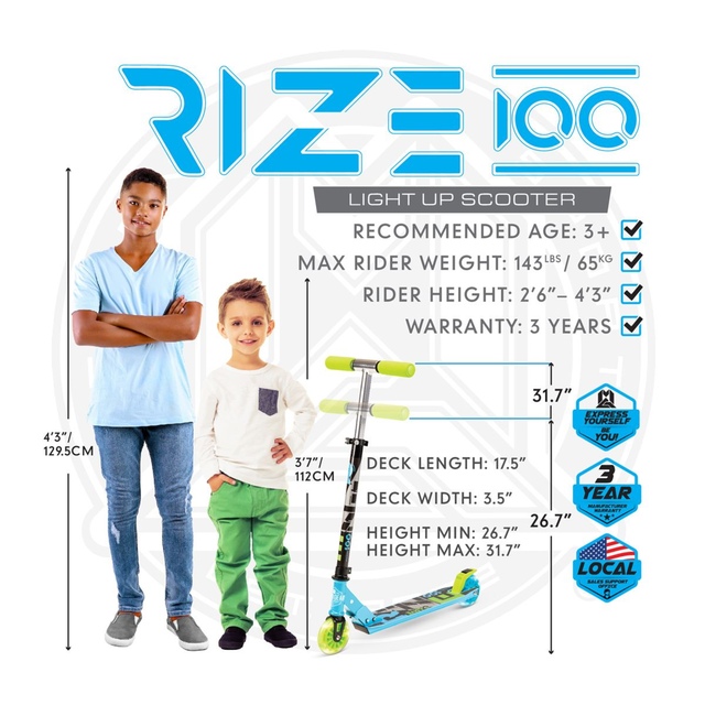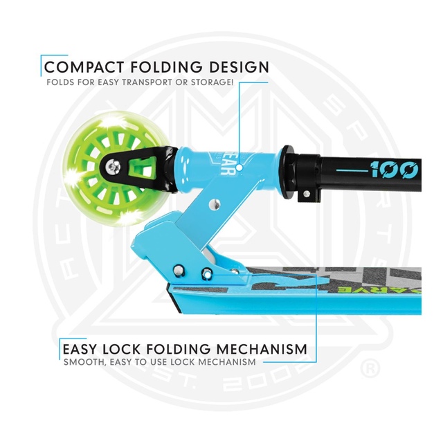 The Madd Gear Carve Rize 100 folding Scooter comes completely assembled and ready to ride! Just unfold the scooter and adjust the handlebar height to suit your child. Perfect for riders 3 years and up featuring soft foam grips, smooth rolling light up two tone motion motion activated 100mm wheels and an easy stop rear brake. The Madd Gear Carve 100 will offer years of enjoyment and an active lifestyle for your child. The Carve 100 Scooter is amazing value for money which makes it one of the best priced per spec folding scooters on the market today. MGP Action Sports Carve 100 Scooter is recommended for ages 3+ with a rider weight up to 66kg / 146LBS. The Carve 100 is designed for riders 3 foot 6 inches and up and is backed by the world. Carve 100 Scooter comes Pre-Dialed with no assembly required. With 2 awesome colors to choose from, Madd Gear will have you scooting in style