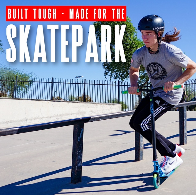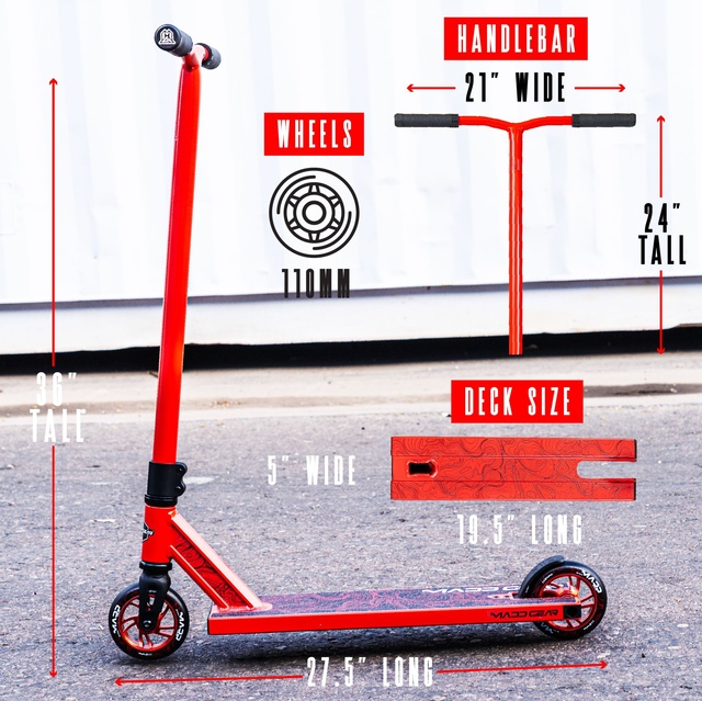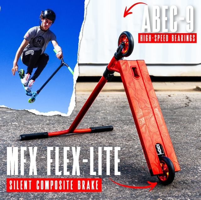 The Madd Gear MG4 Titan Pro Scooter delivers top performance right out of the box. Its low-riser chromoly steel bar offers strength and control, while the fluted hybrid deck provides stability for tricks. High-rebound alloy core wheels with ABEC-9 bearings ensure smooth, fast rides. Designed with a Flex-Lite brake for reliable stopping power and TPR grips for comfort, this scooter is made for dominating the skatepark.