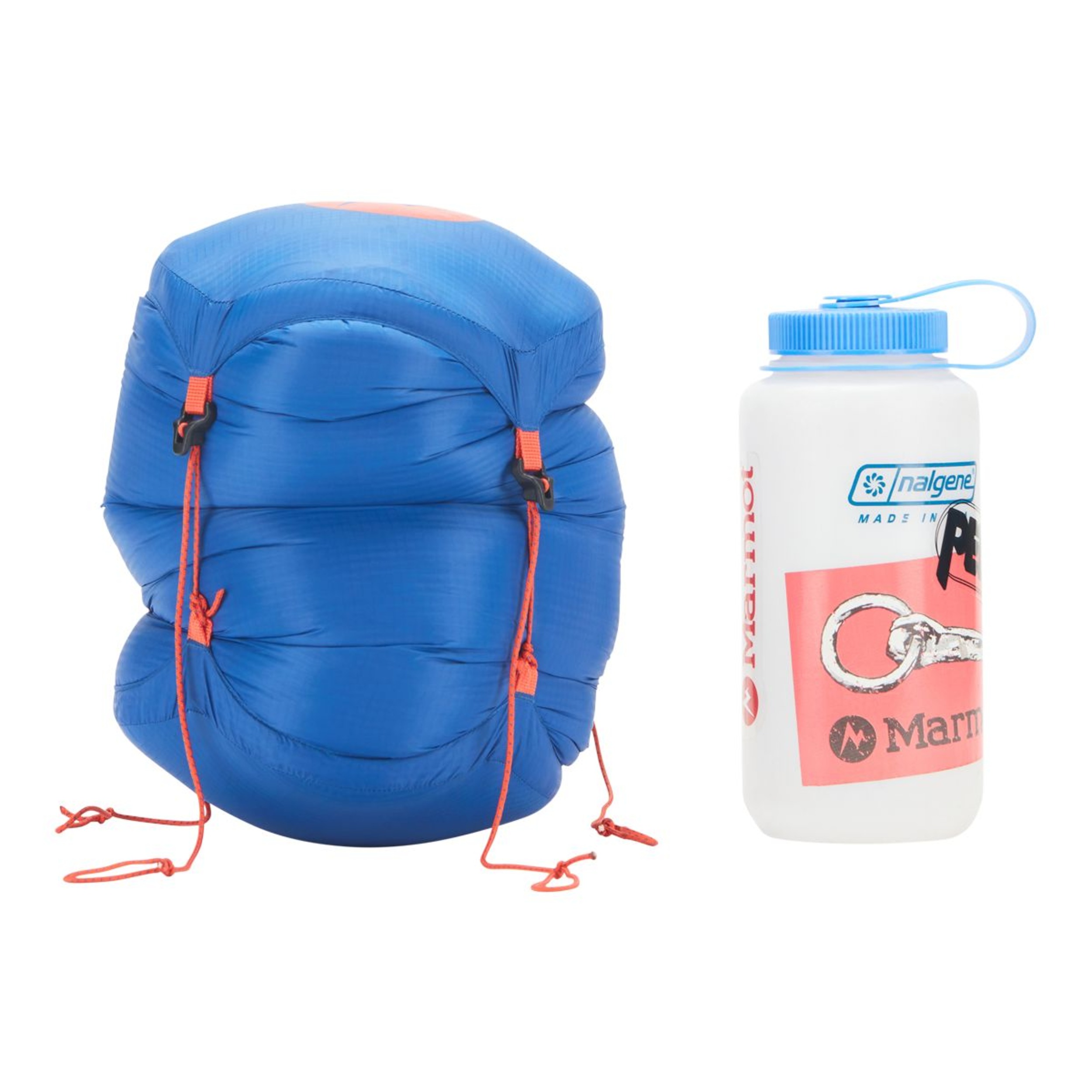 The Marmot Bantamweight Men's 15°F Long Down Sleeping Bag provides exceptional warmth and comfort for cold-weather camping. Filled with 900+ fill power goose down treated with Down Defender™ for water resistance, this sleeping bag ensures you stay warm even in damp conditions. The mummy fit and adjustable hood maximize thermal efficiency. At the same time, the compressible design makes this sleeping bag easy to pack and carry on your adventures.