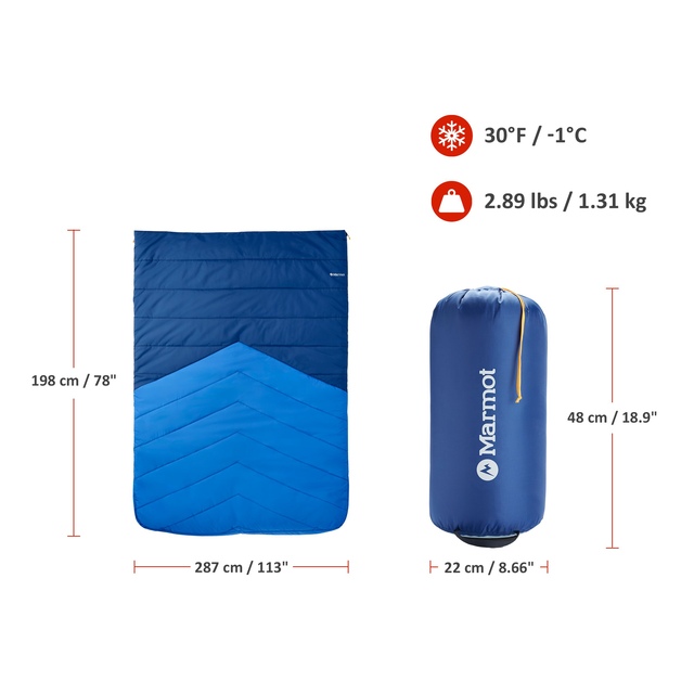 The Marmot Pacifica 30°F/-1°C Double Men's Sleeping Bag provides exceptional warmth, making it the perfect companion for cooler weather camping trips. Designed to keep you comfortable throughout chilly nights, this sleeping bag is made with recycled materials that don't waste resources. Built for extended adventures, the bag offers warmth, durability and the space needed for a cozy night under the stars.
