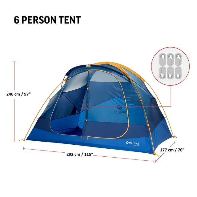 The Marmot Pacifica 6 Person Tent is designed for maximum space and comfort, making it ideal for family camping trips. Easy to pitch, this tent features thoughtful details that enhance your camping experience. Its spacious interior includes well-ventilated mesh panels for airflow and reduced condensation. Well constructed with durable materials, the Pacifica tent stands up to the elements, making it a perfect choice for your outdoor adventures.