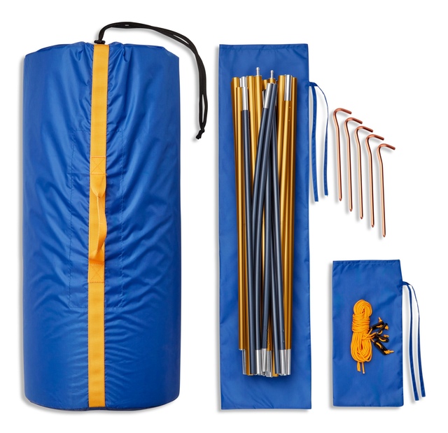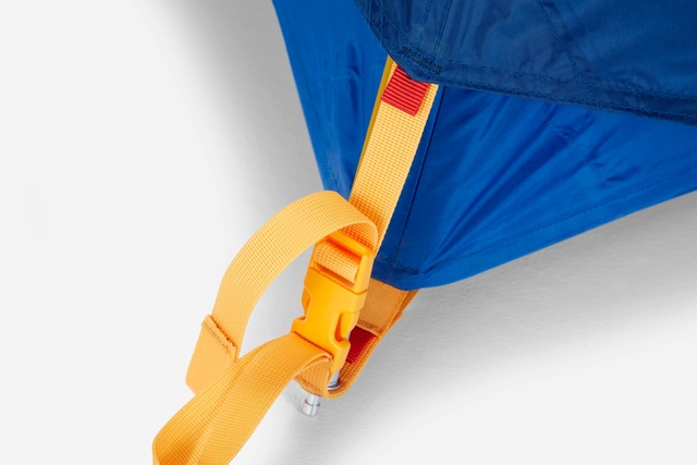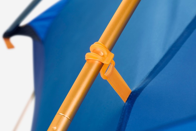 Colour-coded clips and poles simplify setup for quick relaxation