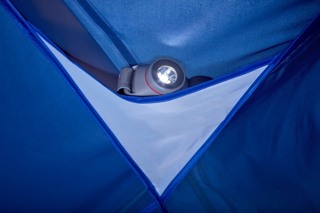 Lamp shade pocket holds a headlamp to provide ambient lighting inside