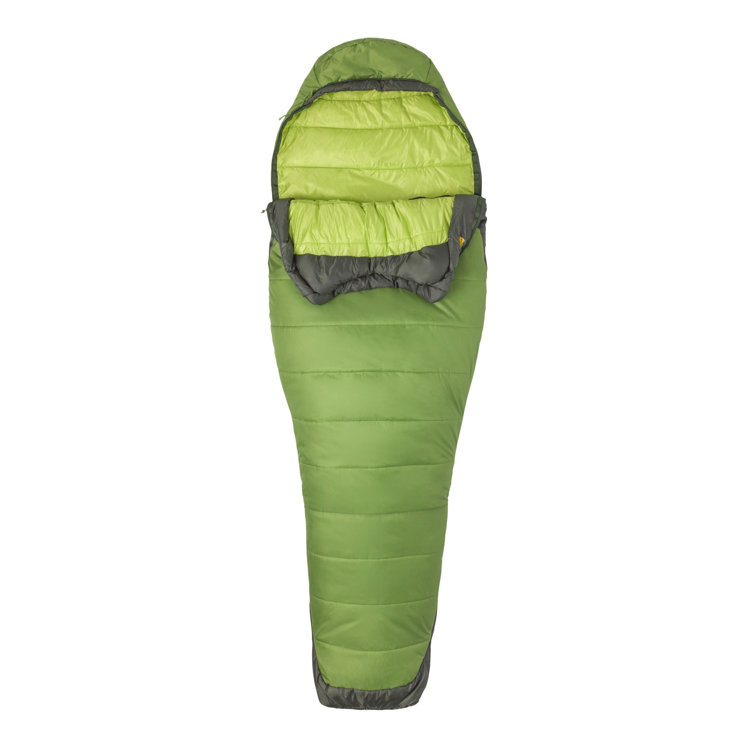 Sleep tight inside the Marmot Women's Trestles Elite Eco Sleeping Bag. It will keep you warm in temperatures as low as 30°F/-1°C. Designed with a 100% recycled polyester shell and lining, this environmentally friendly bag features a unique HL-ElixR ECO fibre blend for optimal warmth. Enjoy enhanced ventilation with a fold-down second zipper and an anatomically 3D footbox for extra room and coziness. This Marmot sleeping bag has an external stash pocket where you can keep small essentials at your fingertips.