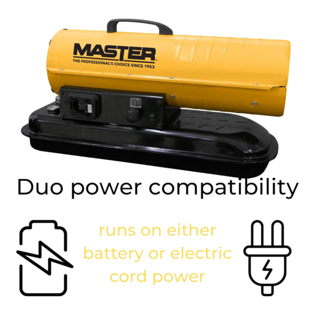 You may be interested in these similar products shown below.The Master 80,000 BTU kerosene radiant heater is a pro's dream for quiet, efficient heat. It warms up to 2,000 square feet of your space with its radiant heat plate. This multi-fuel heater is part of our line of innovative radiant heaters that combine forced-air heat with radiant heat, which warm objects directly like the sun. Users can choose between a battery, or traditional plug to power the unit, delivering unbeatable portability and the ability to take the heat wherever you need it. The result is a heater that works quickly and effectively to bring warmth to a space. It's also a lot quieter than comparable conventional kerosene heaters. Master—built for power.