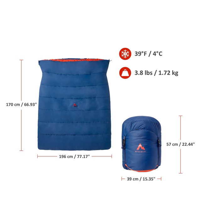 The McKinley Double Men's Sleeping Bag offers cozy accommodation for two, featuring dual-sided zippers for easy access. Its 100% recycled polyester shell, lining and 2.27 kg insulation ensure warmth and sustainability. It's designed with anti-snag webbing, a hook-and-loop collar flap and a pad integration strap, and this McKinley sleeping bag comes with a durable oxford stuff sack for convenient storage.