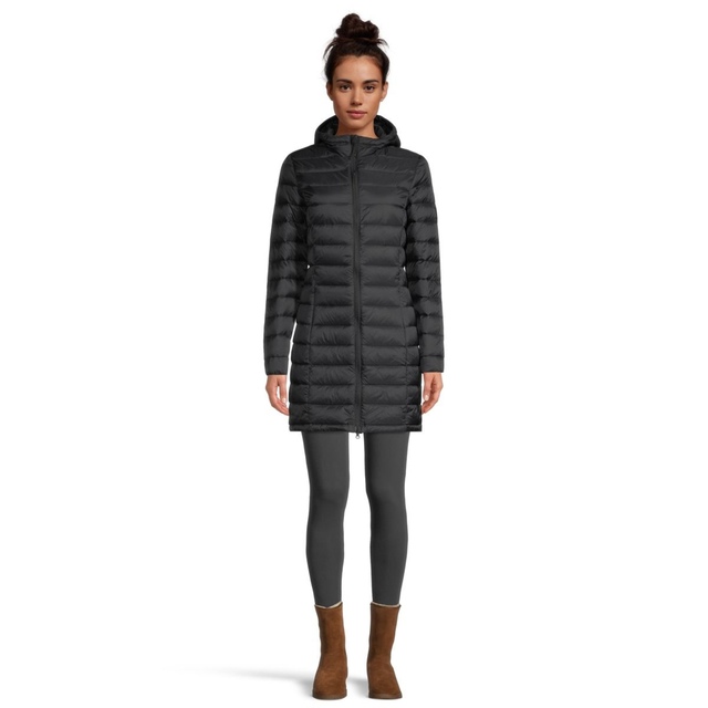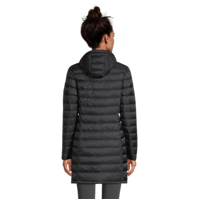 The McKinley Women's Warella Long Coat features a PFC-free design with an adjustable hood and a two-way front zip with chin guard for comfort and convenience. Two side zip pockets are lined with brushed tricot to keep your essentials safe. Ideal for cold-weather coverage, this knee-length McKinley women's coat ensures warmth and style for winter wear.
