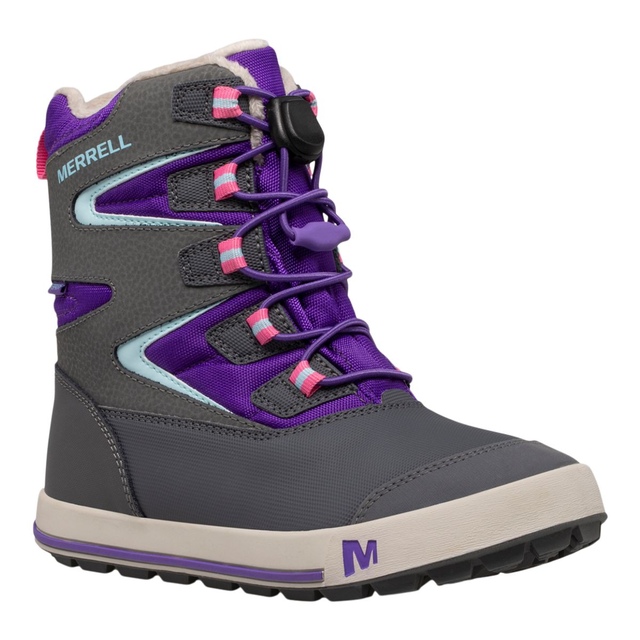Temperature-rated down to -25° F, these Merrell Girls' Snow Bank 3.0 Waterproof Insulated Non-Slip Winter Boots keep feet cozy and dry. Its waterproof status matches even the wildest of winter conditions, and its flexible bungee lacing system features a toggle closure for a fast fit. Temperature-rated to -25°F/ -32 °C, these insulated boots ensure keeping feet warm and comfortable.