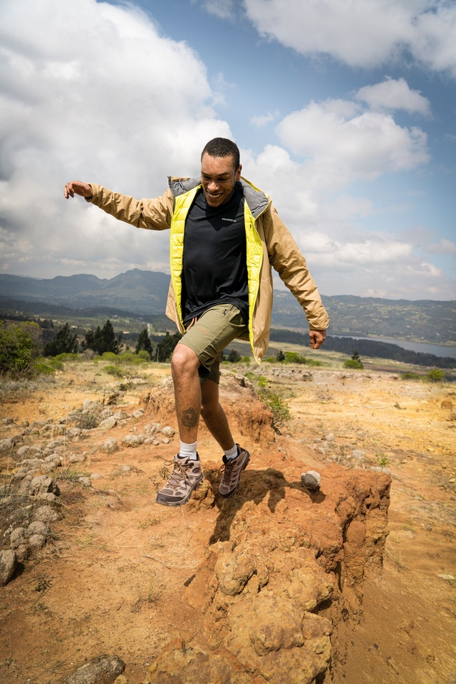 Pigskin leather and mesh upper ensure durability while bellows tongue keeps debris out