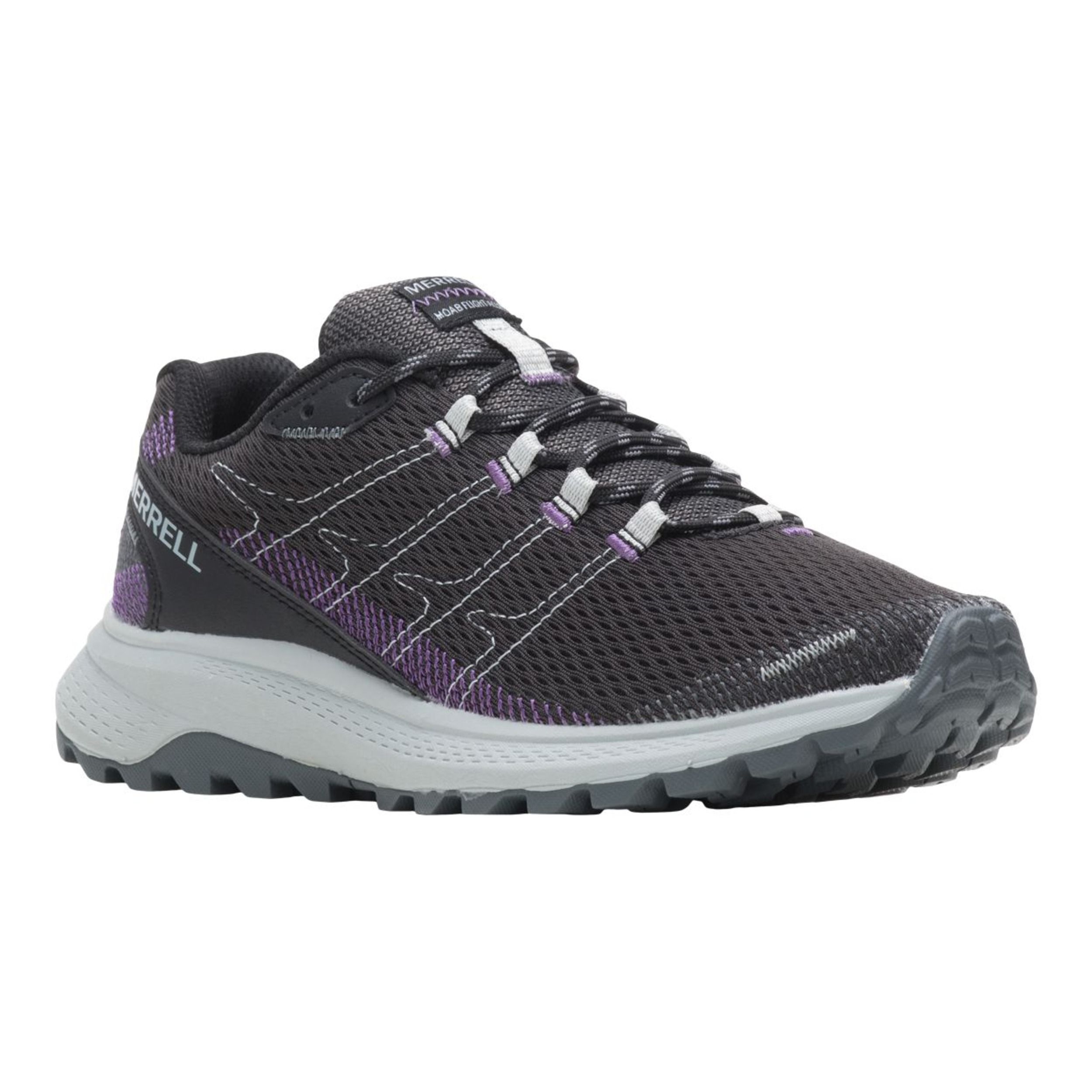 Take on trail after trail in comfort with the Merrell Women's Fly Strike Trail Runners. Crafted for durability and comfort on hard-packed trails, these lightweight shoes feature a breathable mesh upper, padded collar and decorative stitching. The eco-friendly EVA foam footbed and shock-absorbing midsole ensure a smooth, supportive run.