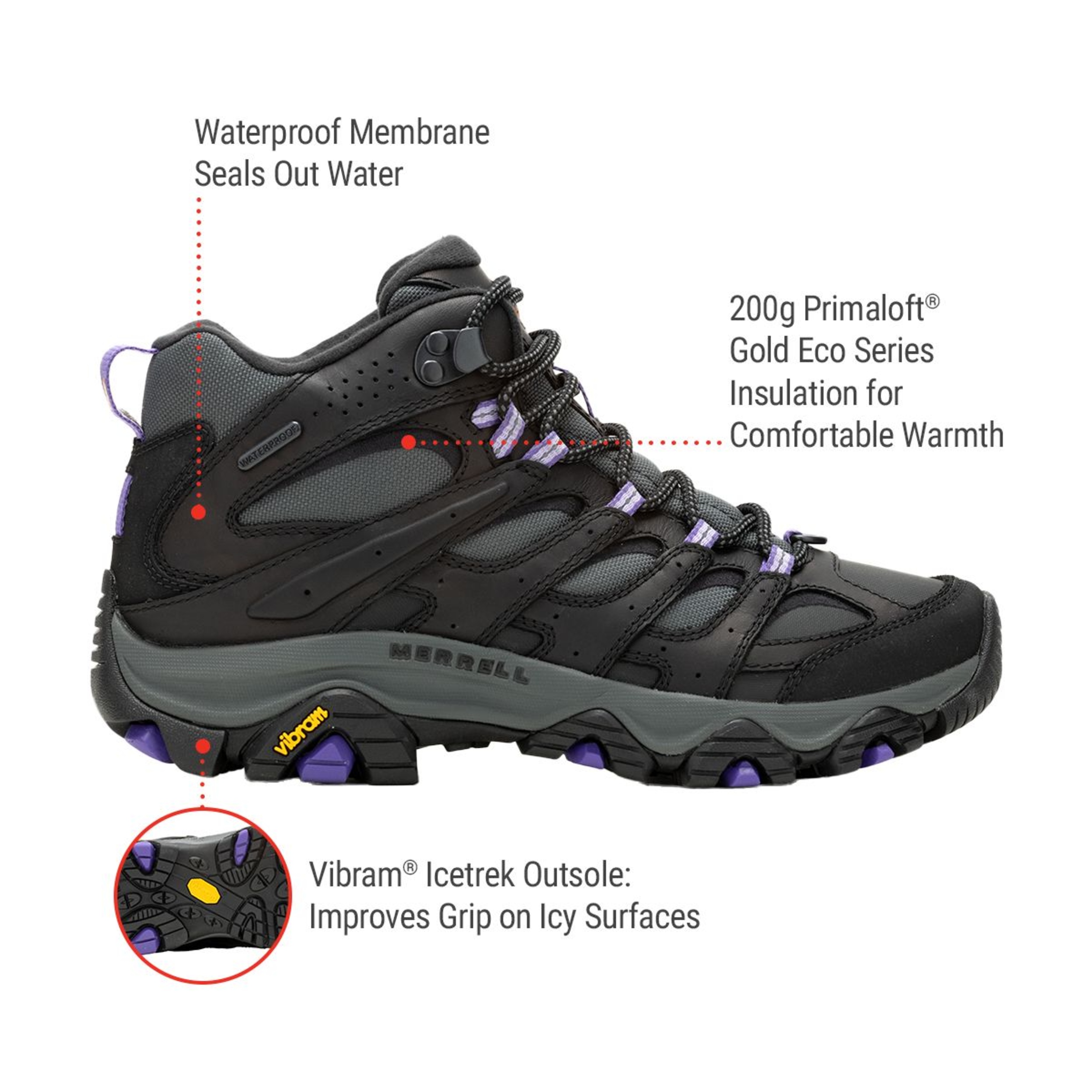 The Merrell Women's MOAB 3 Thermo Mid Waterproof Winter Boots combines the same out-of-the-box comfort you expect from a Moab. Its waterproof upper keeps you dry and protected. Made with PrimaLoft® Gold Eco insulation and Vibram® IceTrek, these winter boots deliver extreme winter performance.