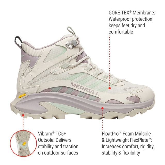 The Moab Speed 2 Mid GTX is the latest innovation in hiking from the Merrell brand pairing the knowledge and trail insights from the best-selling hiking boot, the Merrell Moab, with the latest innovations from athletic hikers across the globe. Improved traction with the incorporation of Vibram TC5+ rubber, specially formulated for Merrell, with the an all-new design and traction lugs. Hikers know that comfort is king and the all-new Moab Speed with 30% increase in foam underfoot. Breathability also significantly improved incorporating learnings from Merrell's best selling Merrell Test Lab trail running lineup. Underfoot you will find a secure fit heel counter and a full length rock plate to keep you confident on the trail in any conditions. This version also incorporate GORE-TEX, the most trusted name in waterproofing to keep your feet dry in inclement weather.