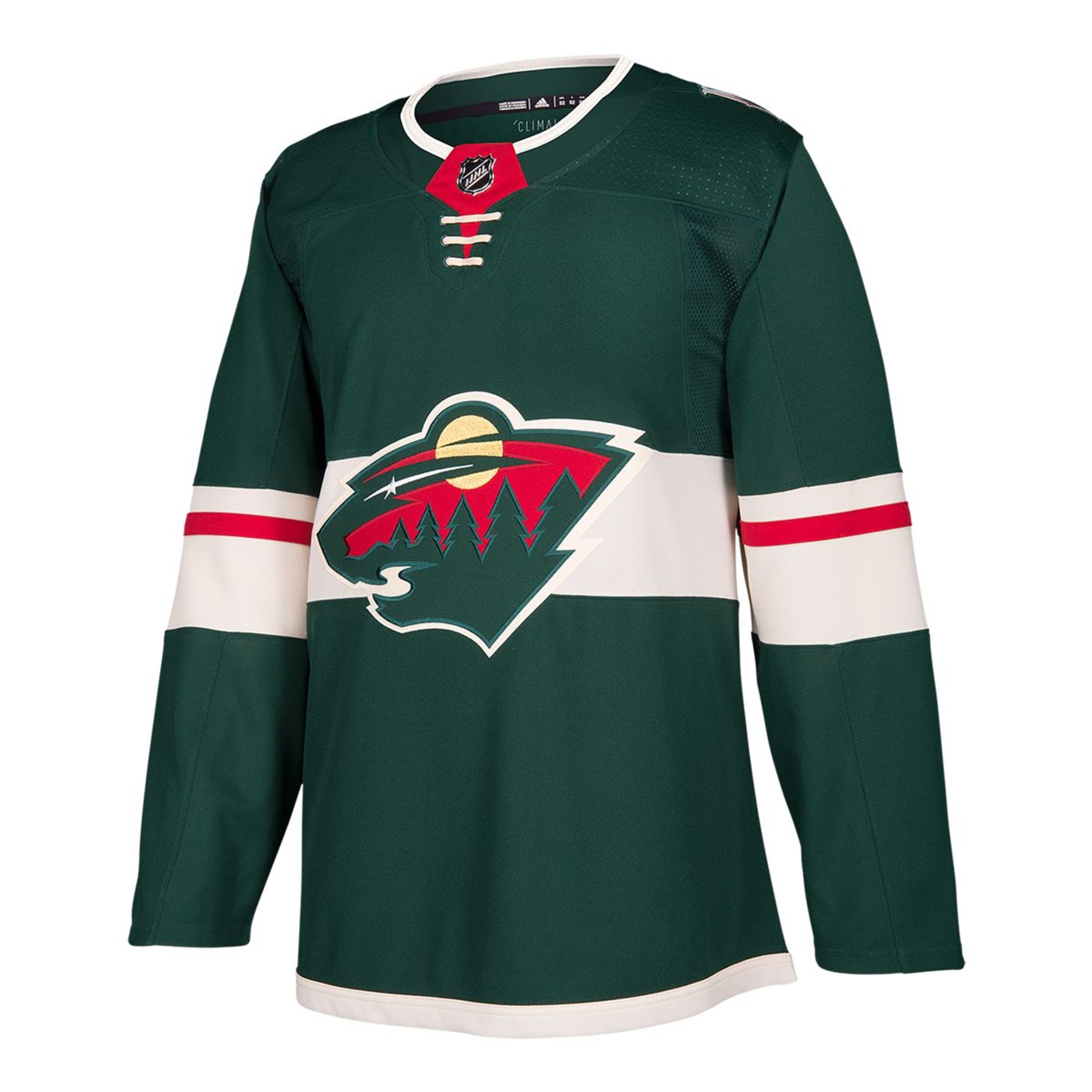 Online Only. This men's hockey jersey is the same one the Minnesota Wild wear when the puck drops at Xcel Energy Center. climalite® fabric keeps you dry and comfortable, while a team crest on the front shows your pride for the Wild, a team stacked with homegrown talent.