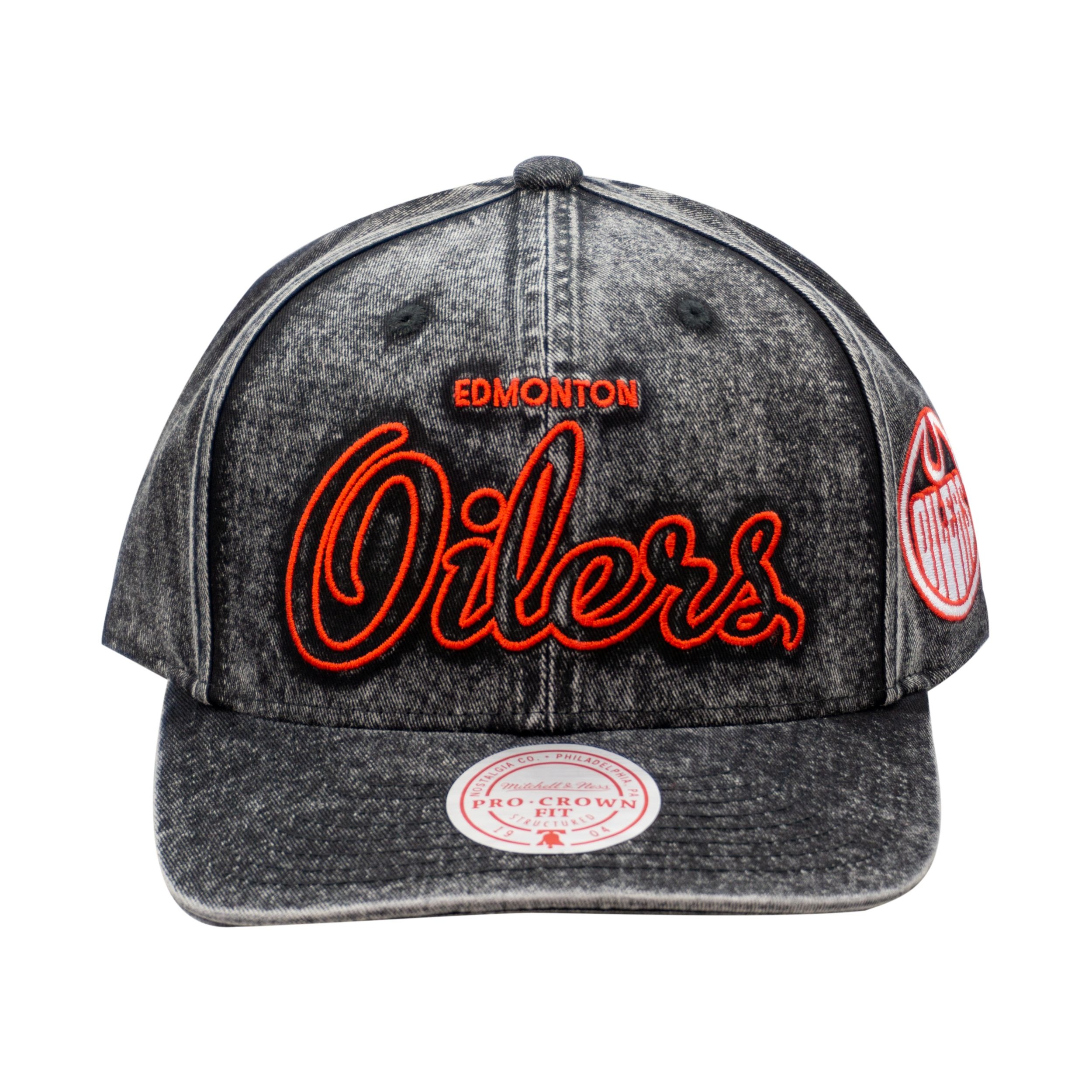 Show your support for the Edmonton Oilers with the Edmonton Oilers Mitchell & Ness Living On The Edge Pro Crown Cap. This cap features a sleek design that is perfect for any hockey fan looking to add a touch of team pride to their outfit. The adjustable fit ensures comfort for all-day wear.